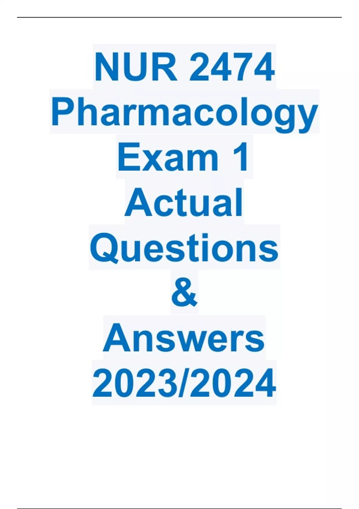 NUR 2474 Pharmacology Exam 1 Actual Questions & Answers 2023/2024