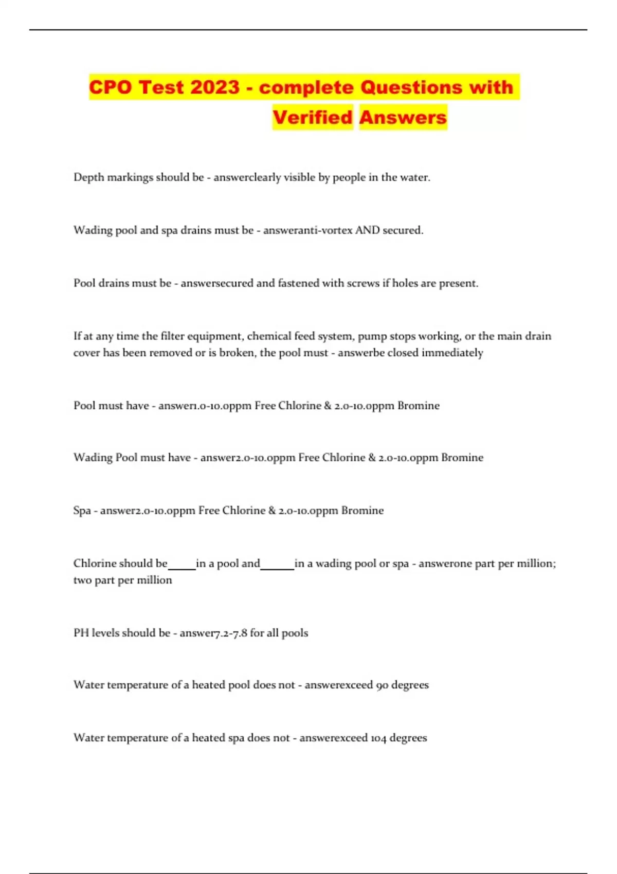 CPO TEST QUESTIONS AND ANSWERS - 2023 | ALL ANSWERS ARE CORRECT