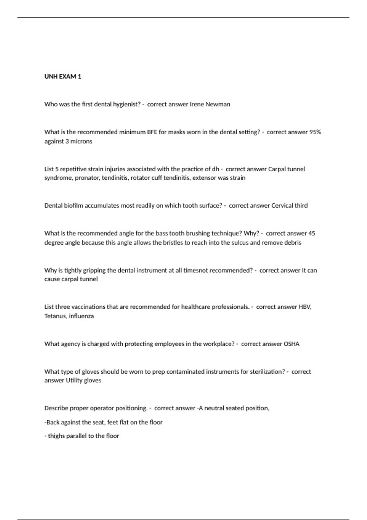 UNH EXAM 1 questions and 100% correct answers