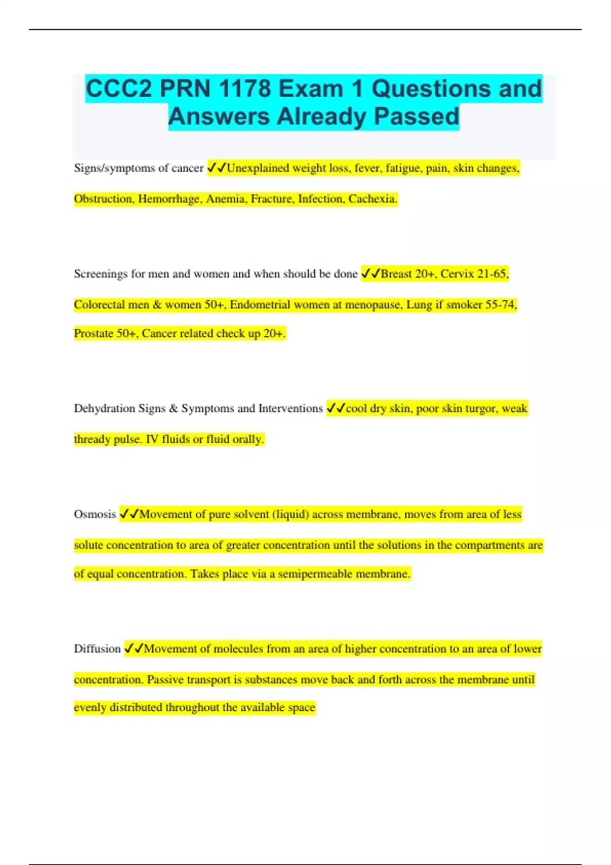 CCC2 PRN 1178 Exam 1 Questions and Answers Already Passed