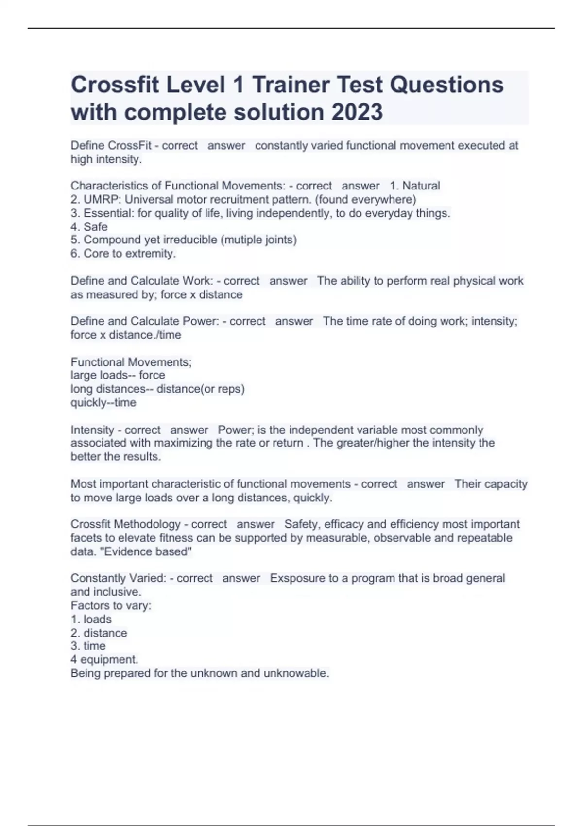 PACKAGE DEAL OF CROSSFIT LEVEL QUESTION AND ANSWERS 2023 COMPILATION