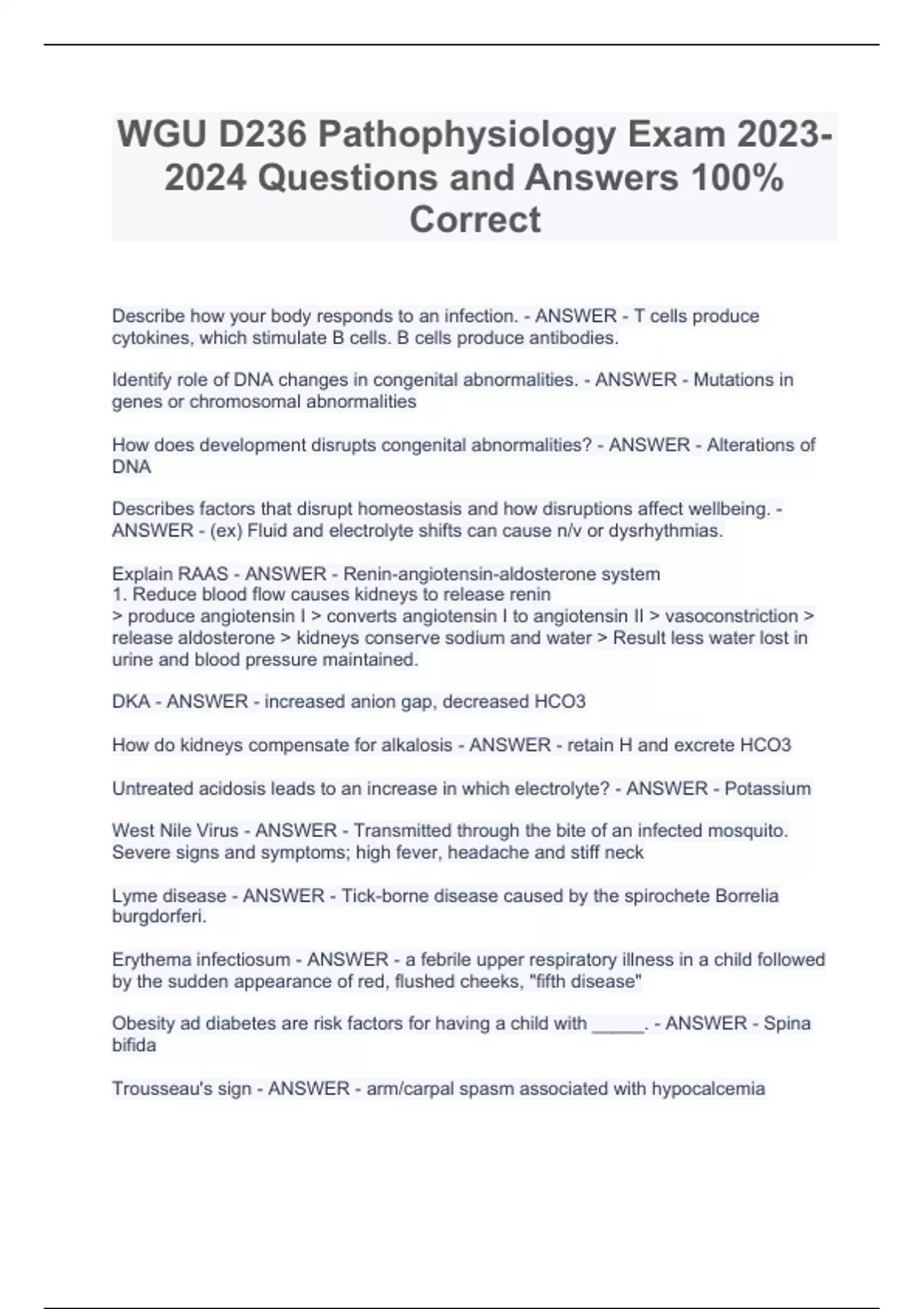 WGU D236 Pathophysiology Exam PACKAGE DEAL ()- With Questions & ANSWERS (100% Correct)