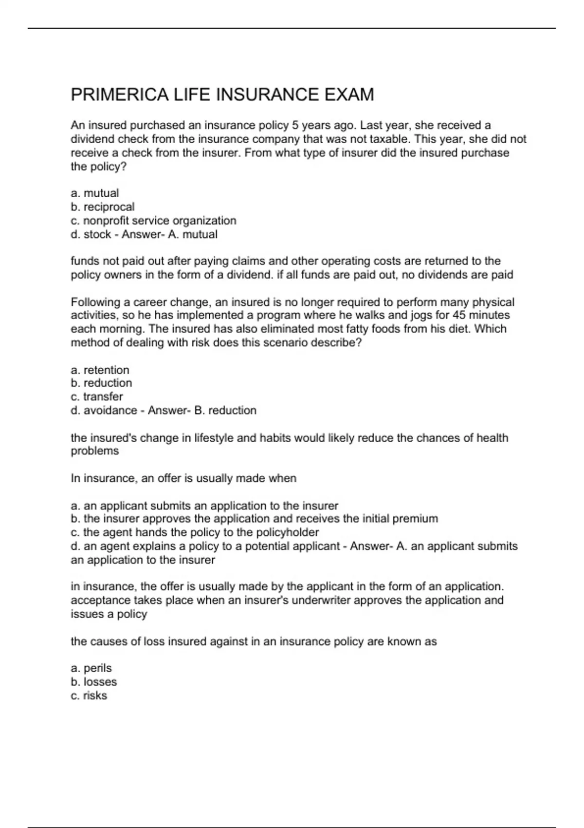 PRIMERICA LIFE INSURANCE EXAM/Primerica - Life Insurance Exam/Primerica Practice Test/Primerica Practice test part 1/Primerica exam 2 Questions And Answers/Primerica - Exam test Questions And Answers/PRIMERICA EXAM QUESYIONS AND ANSWERS/Primerica Practice Exam 2/Primerica Life Exam (State)/Primerica: stimulated exams/Primerica simulate exam