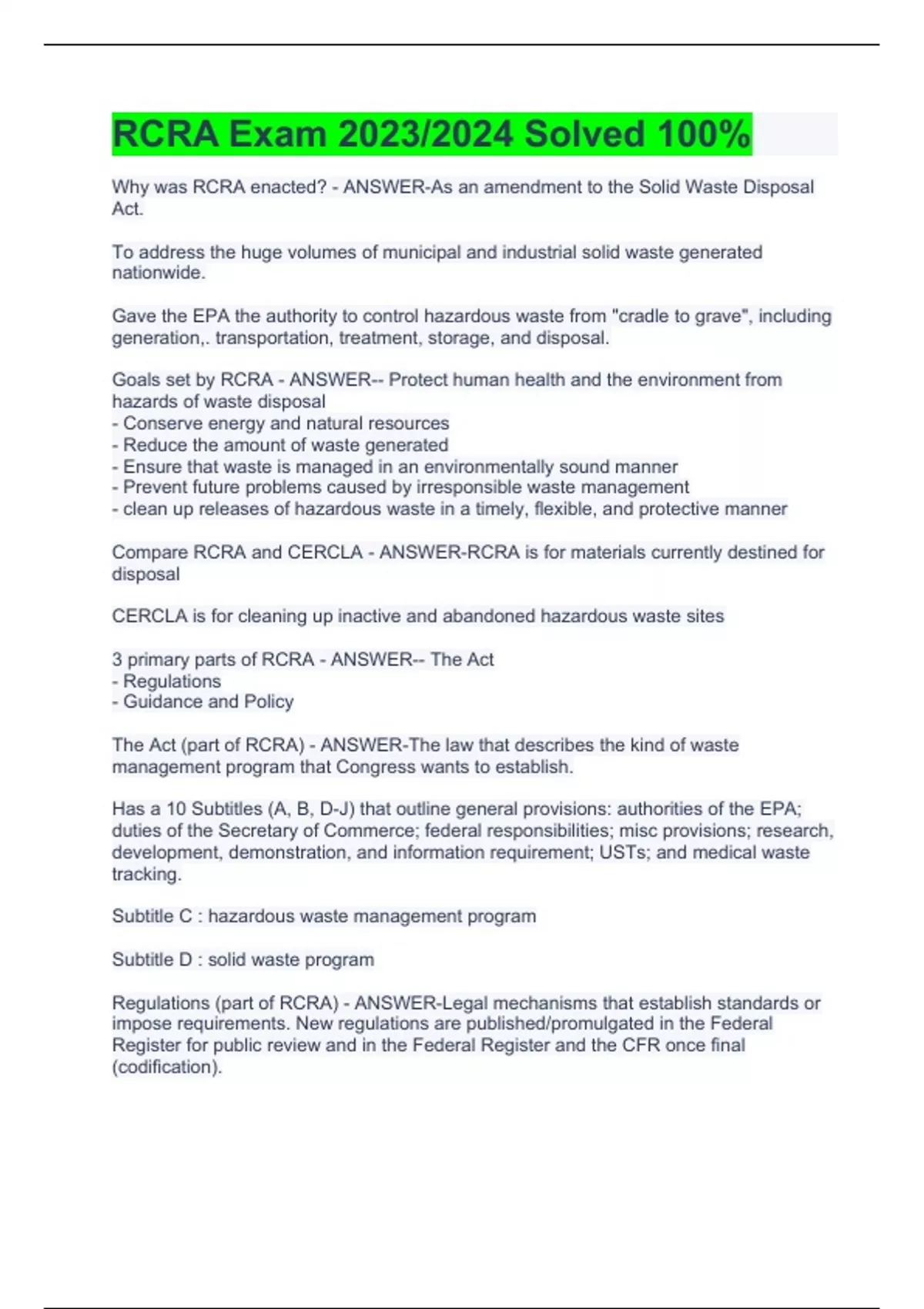 RCRA /RCRA CERLA Exam Package Deal Full Solutions Pack