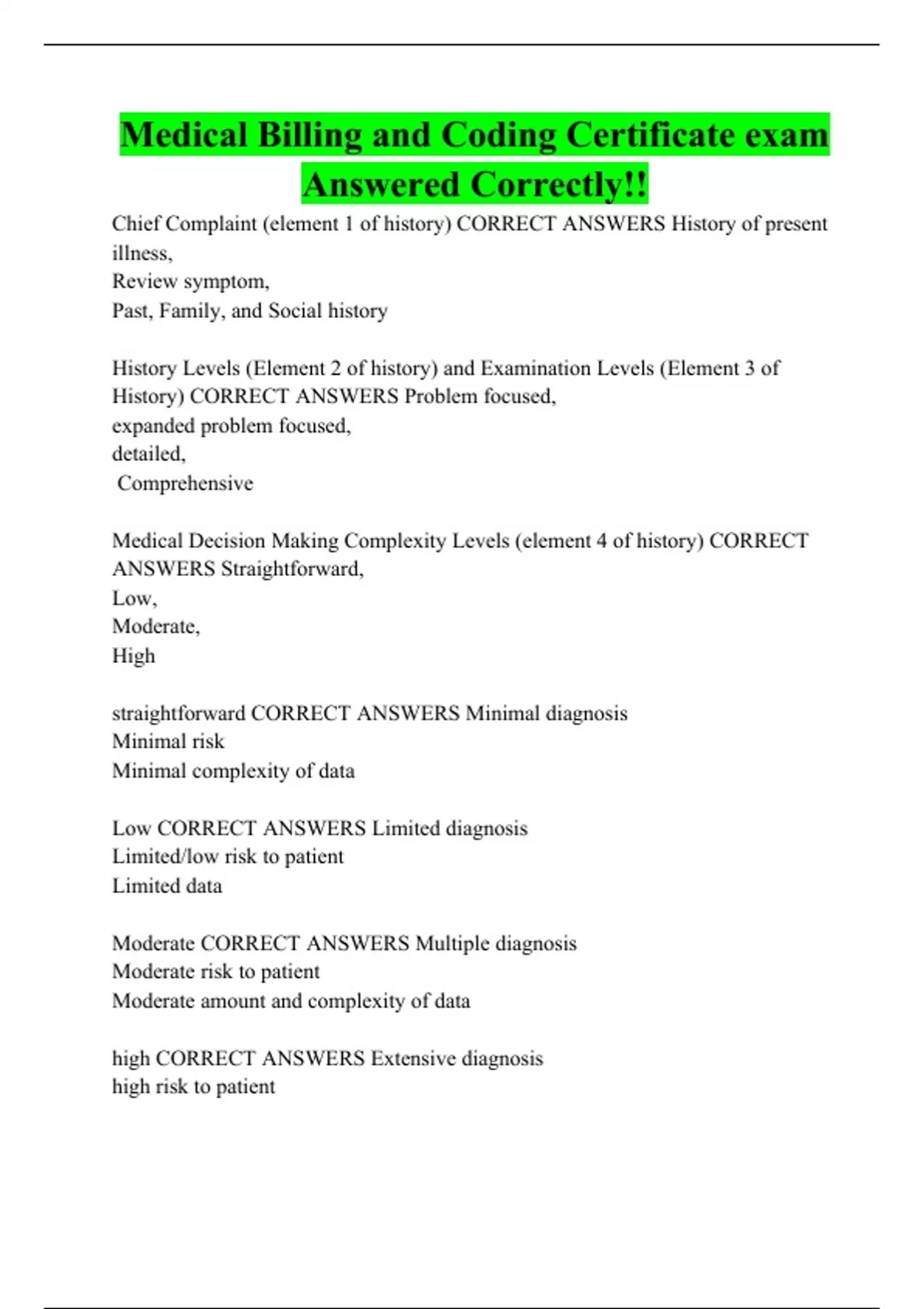 Medical Billing And Coding Exam With Verified Answers (Package Deal)