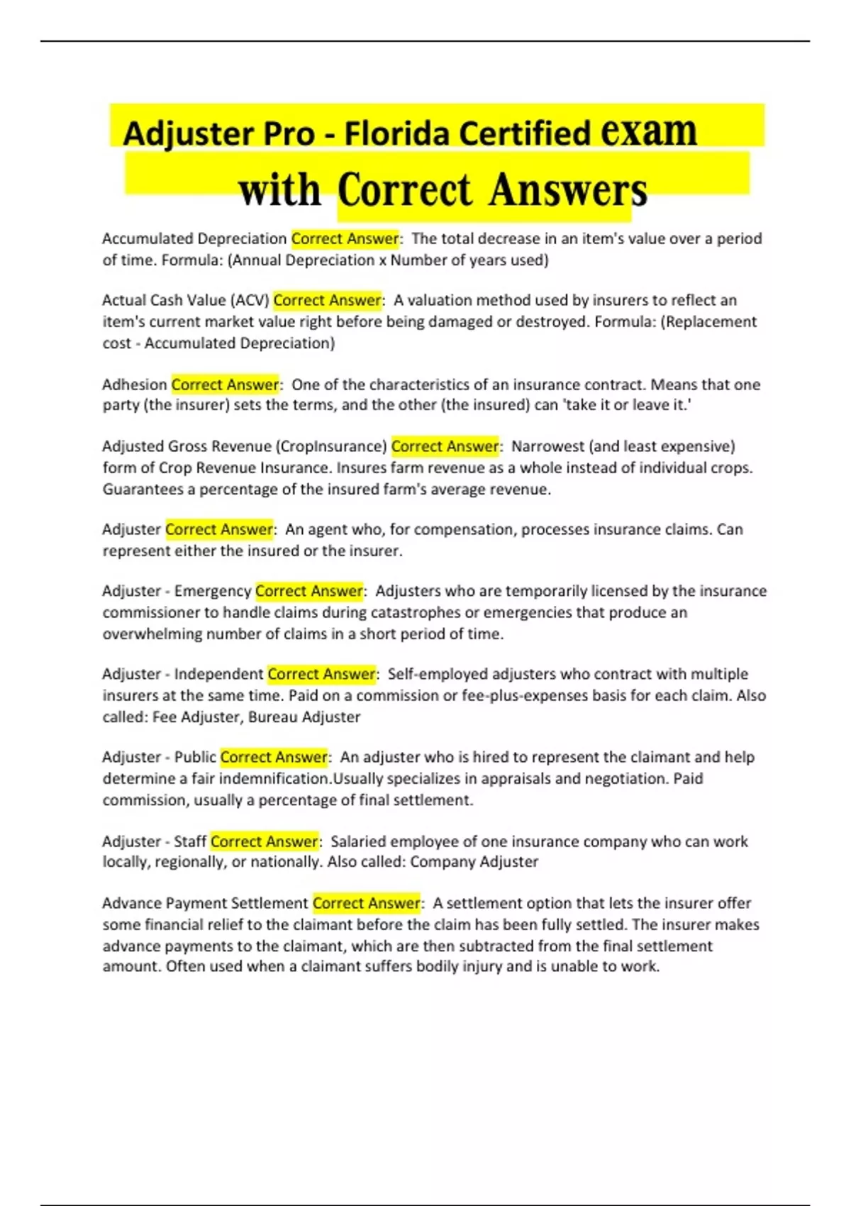 Claims Adjuster Exams with 100% Correct Answers 2023