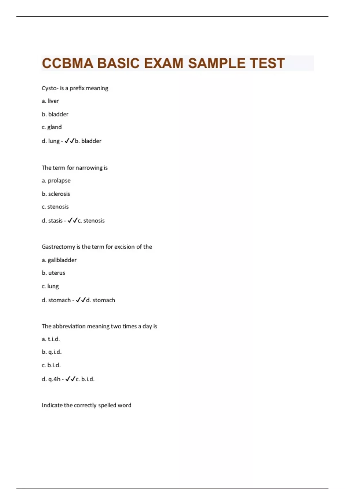 CCBMA BASIC EXAM SAMPLE TEST | 179 Question with 100 % correct answers | Verified