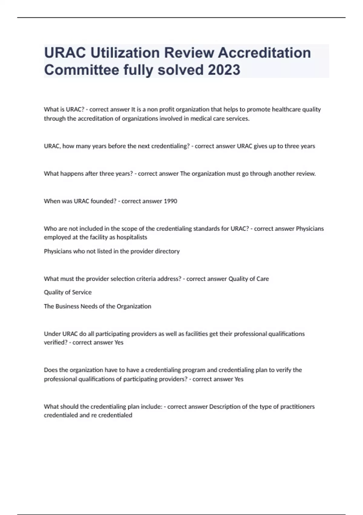 URAC - Utilization Review Accreditation Commission fully solved graded A+ 2023