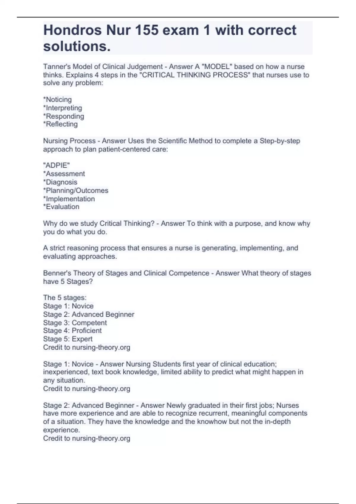 Hondros Nur 155 exam 1 with correct solutions.,hondros pn critical thinking nur 155 final already passed!!,Nursing 155 final hondros solved 100% correct!!,NUR 155 Narrative Exam With Correct Answers.,Hondros Nursing 155 Midterm (Choijna first 3 weeks 150 lab&lec) 2023,hondros nurse 155 midterm