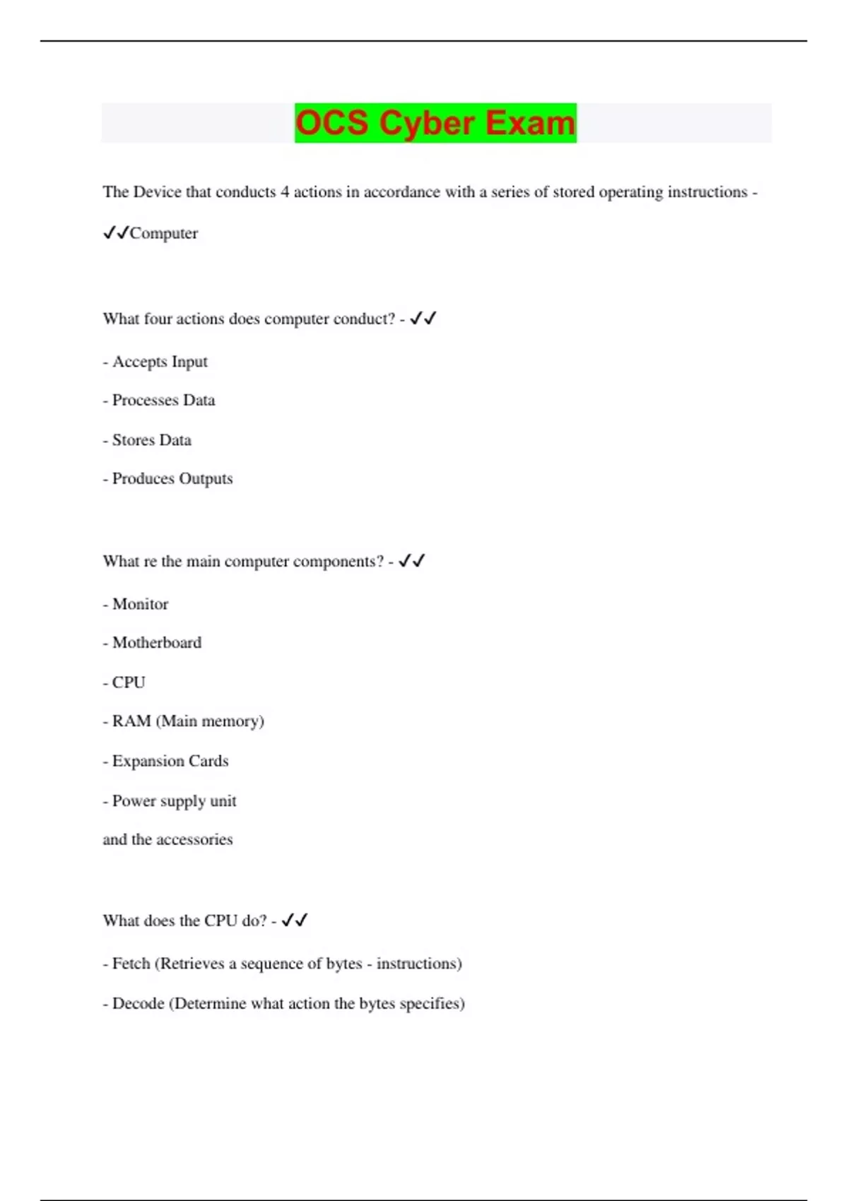 OCS Cyber Exam | 112 Questions with 100% Correct Answers | Updated & Verified | 20 Pages