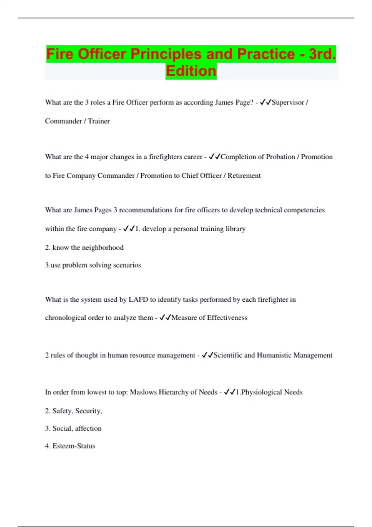 Bundle for Fire Officer Exams Compilation | Verified | Guaranteed Success