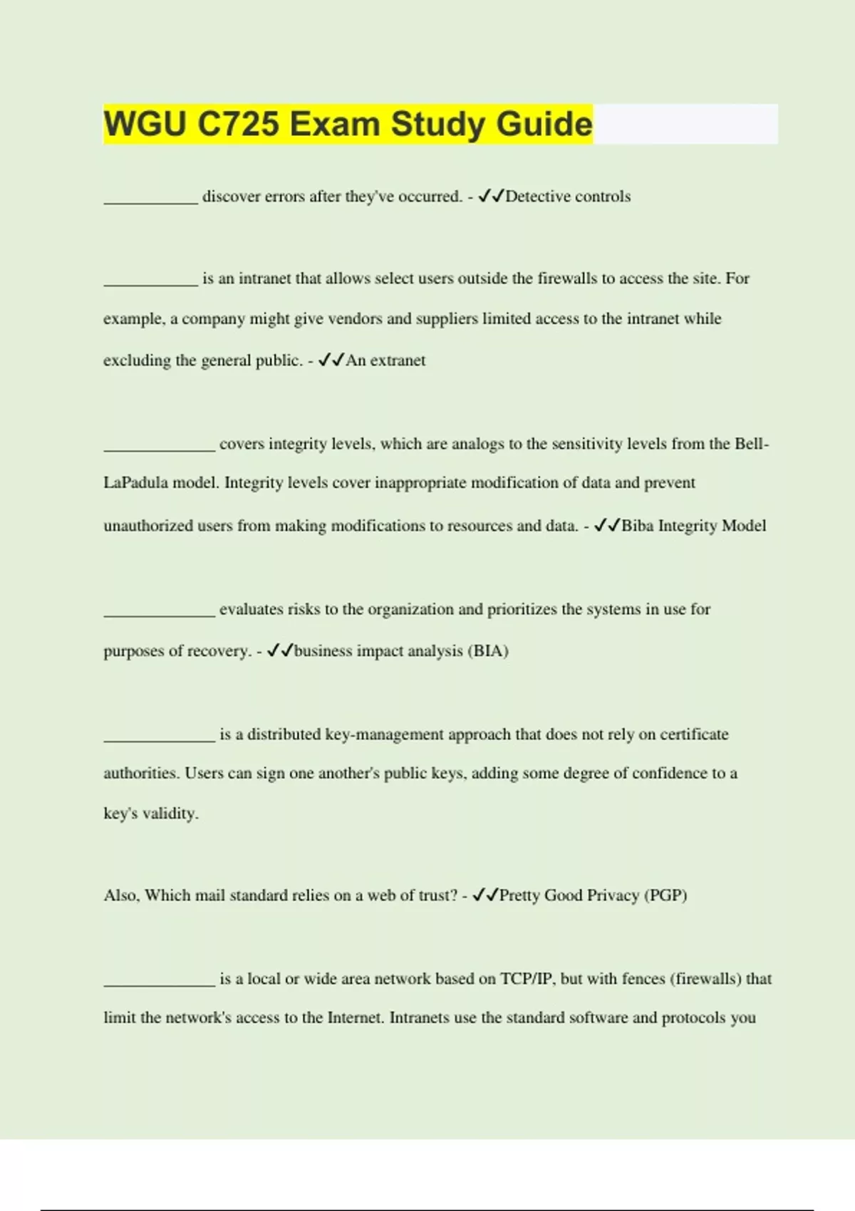 WGU C725 Information Security and Assurance | 460 Questions with 100% Correct Answers | Verified | Latest Update | 152 Pages