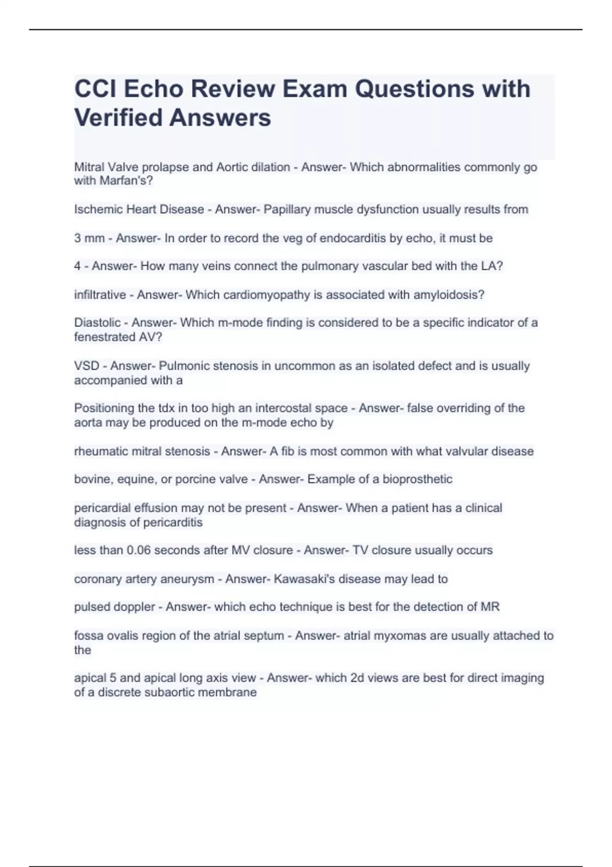 CCI Echo Review Exam Questions with Verified Answers CCI Echocardiography Practice Exam 2023 Questions and Answers CCI Echo Review Exam Questions and Answers CCI ECHO Questions with Verified Answers CCI practice exam from ESP questions and answers CCI Practice Exam Questions with Verified Answers CCI practice review Exam CCI Echo Review Set 2 Exam