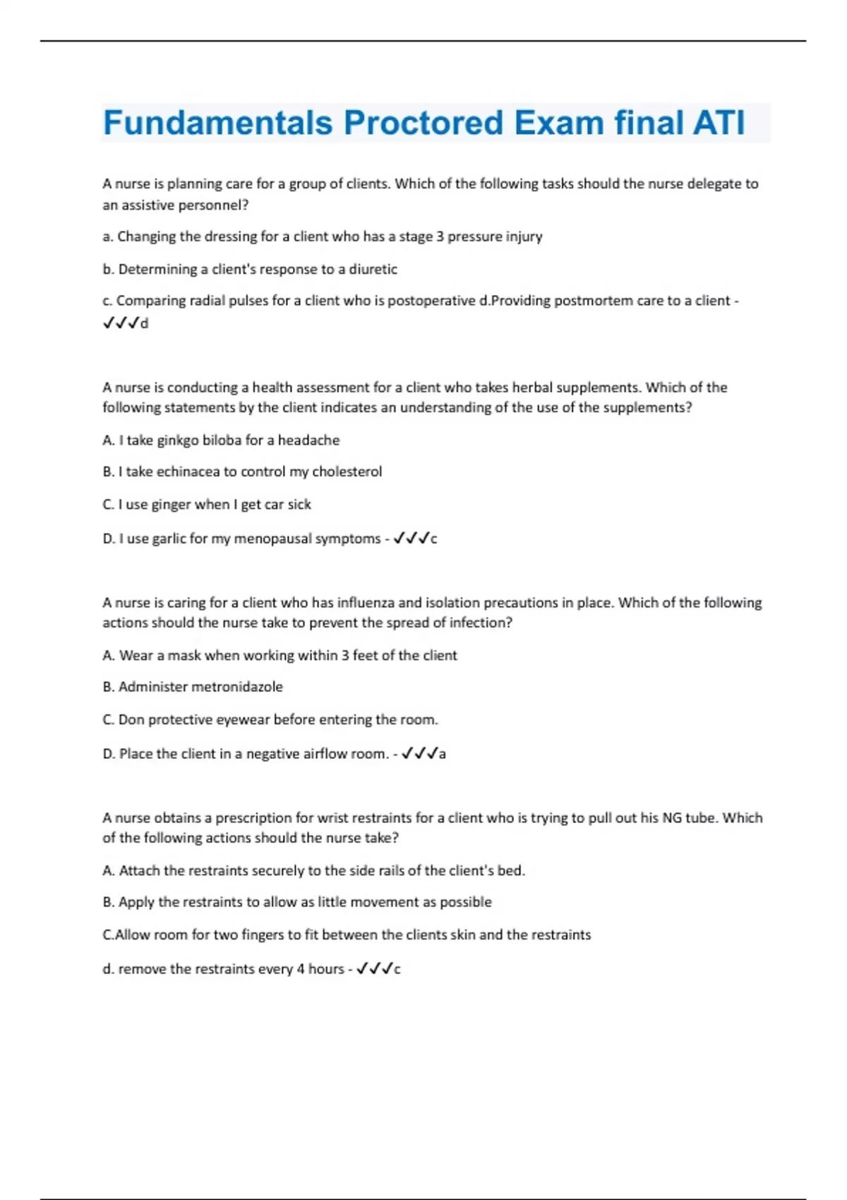 ATI Fundamentals Proctored PN-ATI EXIT Package Deal 2023 Full Solution Pack with complete solution