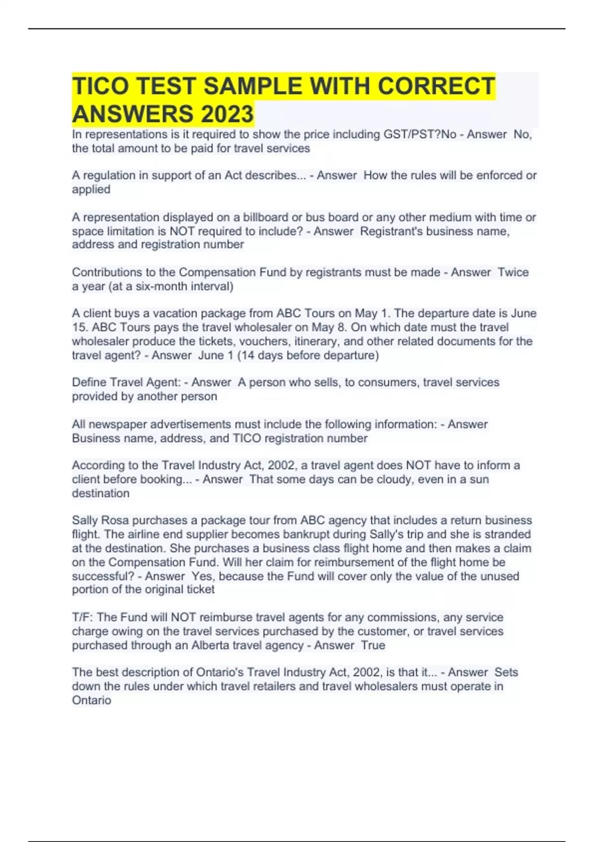 TICO EXAM QUESTIONS WITH CORRECT ANSWERS JANUARY 2023/TICO Supervisor/ Manager Exam With Correct Answers/TICO TEST SAMPLE WITH CORRECT ANSWERS 2023