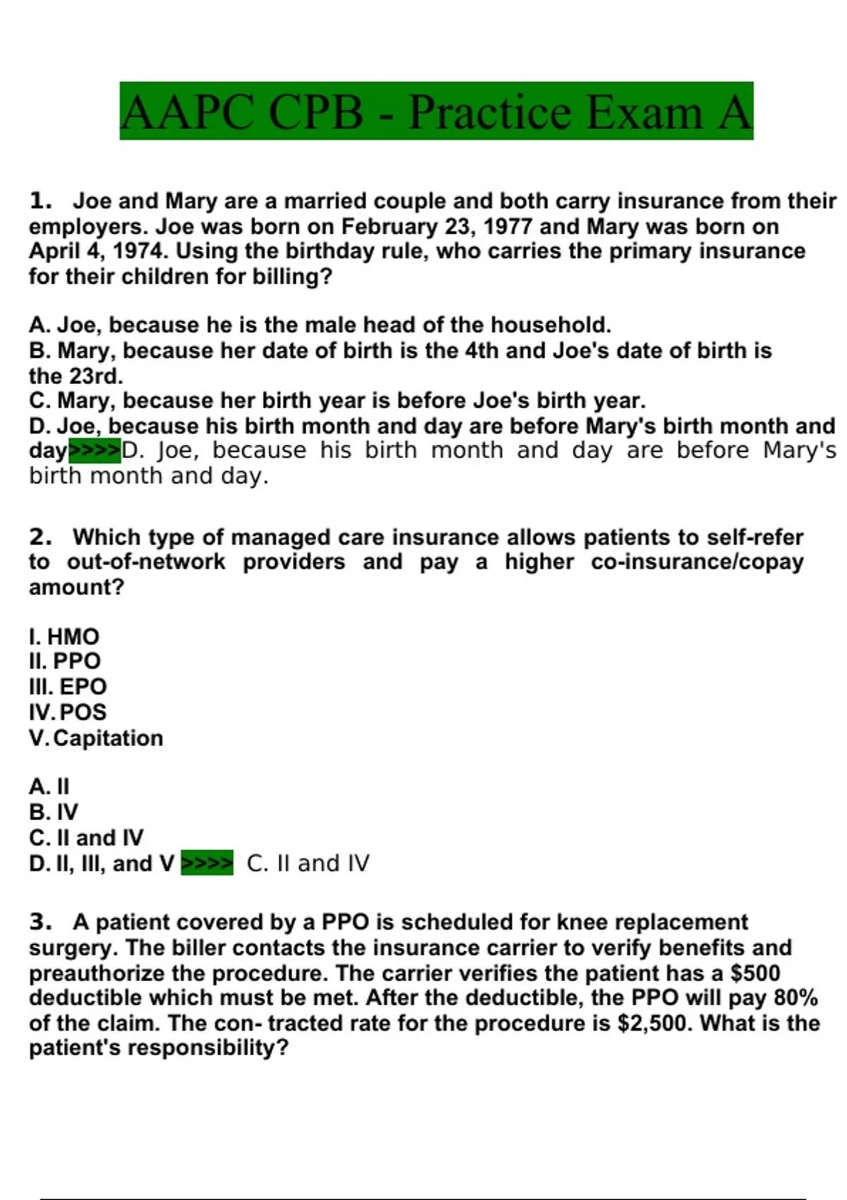 AAPC CPB Practice Exams A,B,C and Final | Verified Bundle|Questions and Answers (2022/2023)