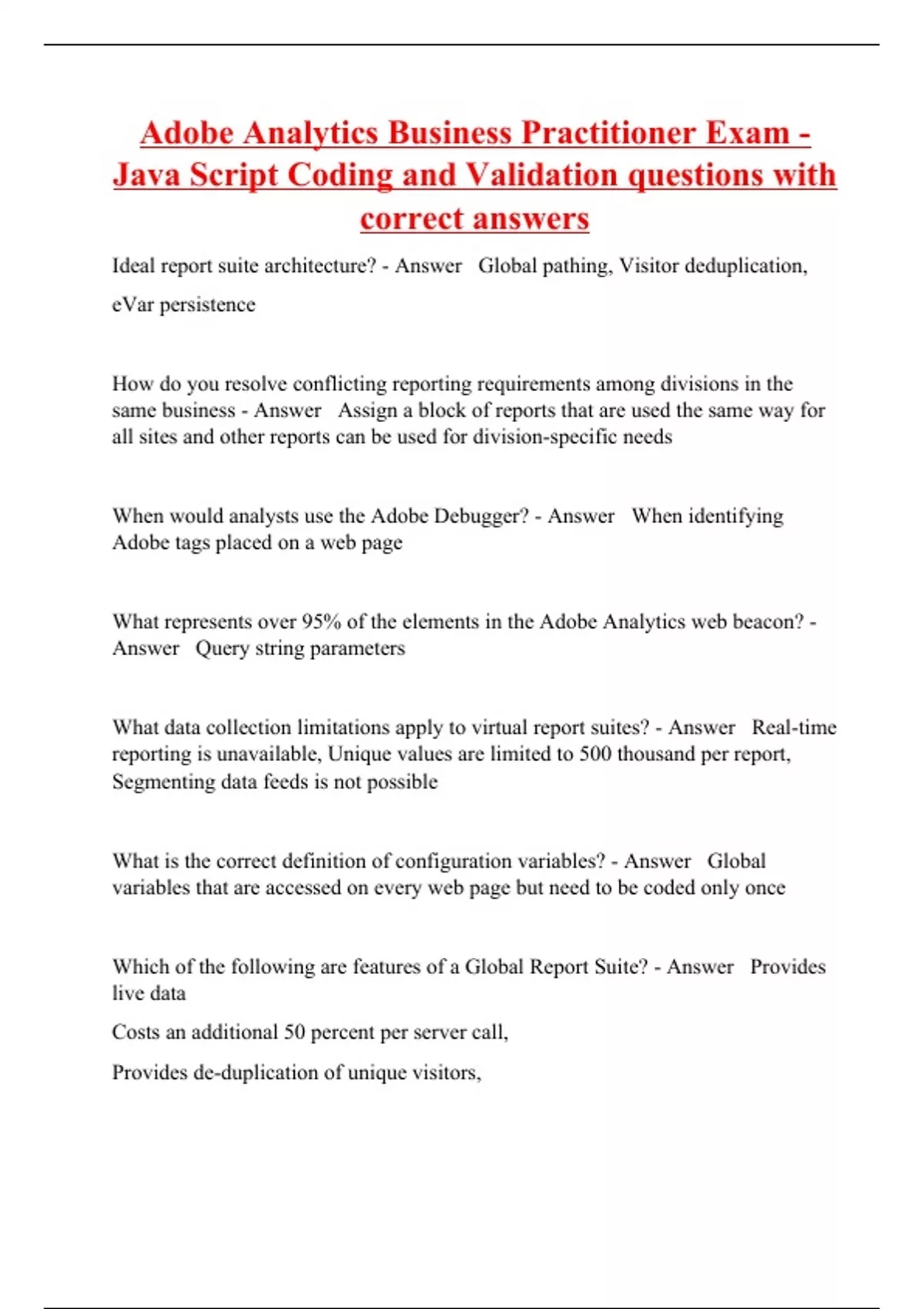 Adobe Analytics Business Practitioner Exam - Java Script Coding and Validation questions with correct answers