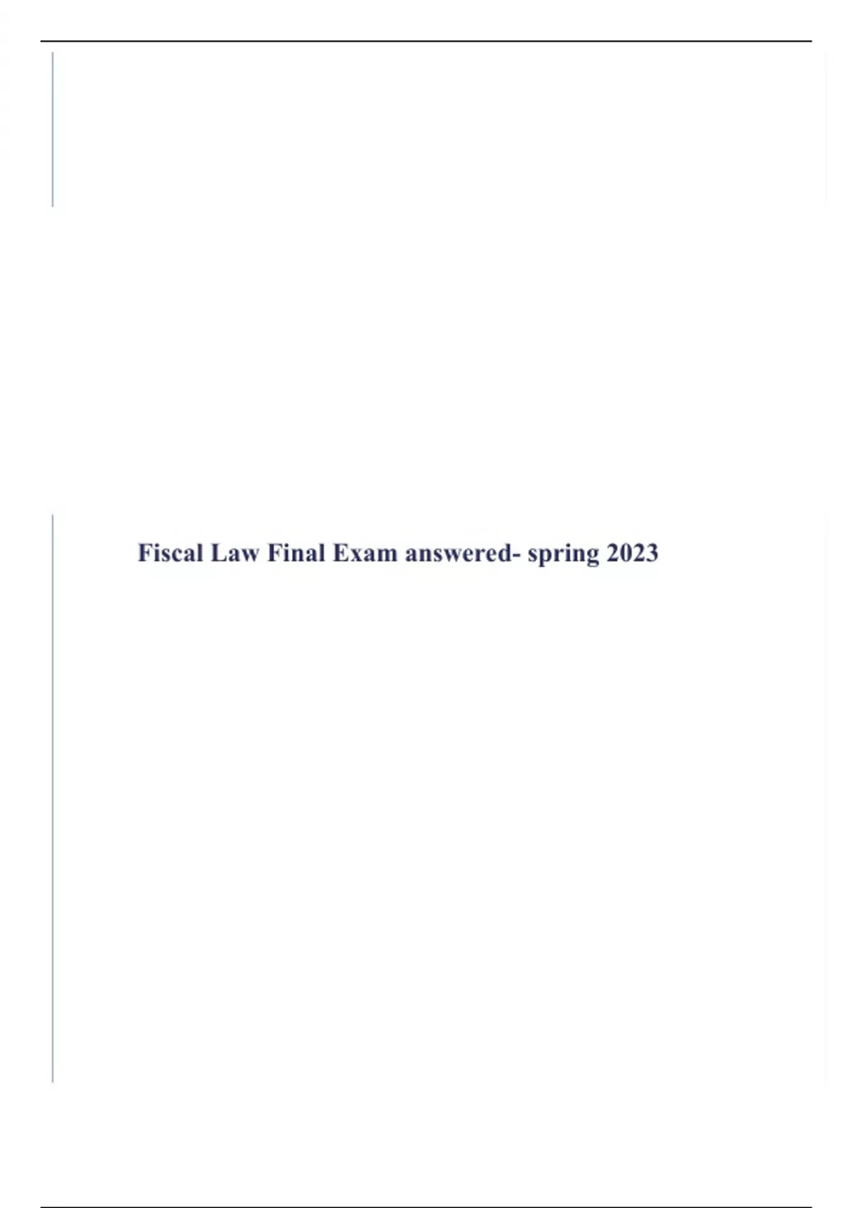 1 Exam (elaborations) Fiscal Law Final Exam answered- spring 2023 2 Exam (elaborations) CLG 001_ Fiscal Law Exam version 2_ updated and answered.