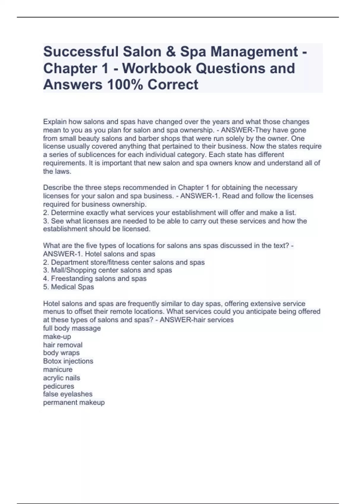 Milady Salon& Spa Management EXAM BUNDLE| Questions and Answers 100% CorrectMilady Salon& Spa Management EXAM BUNDLE| Questions and Answers 100% CorrectMilady Salon& Spa Management EXAM BUNDLE| Questions and Answers 100% CorrectMilady Salon& Spa Management EXAM BUNDLE| Questions and Answers 100% CorrectMi