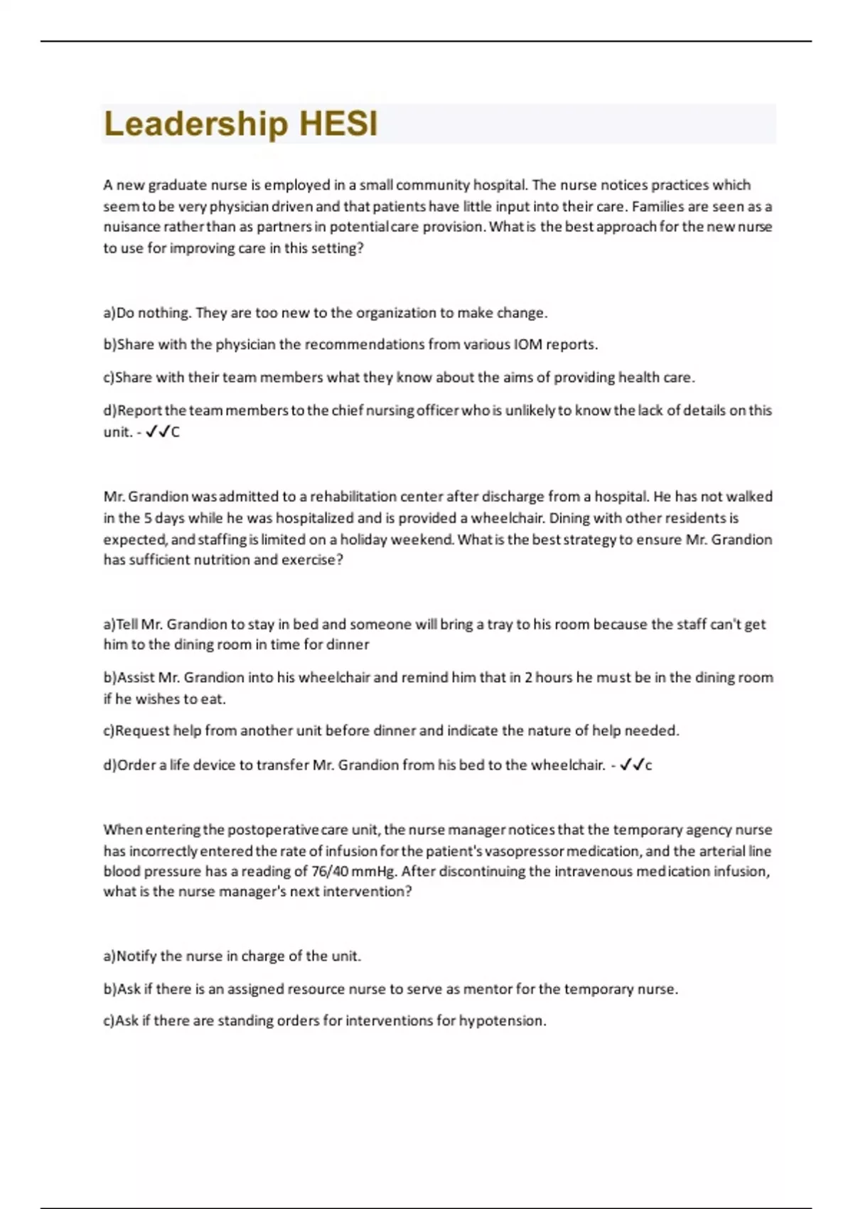 Leadership & Management HESI Questions | Questions and Answers with complete solution