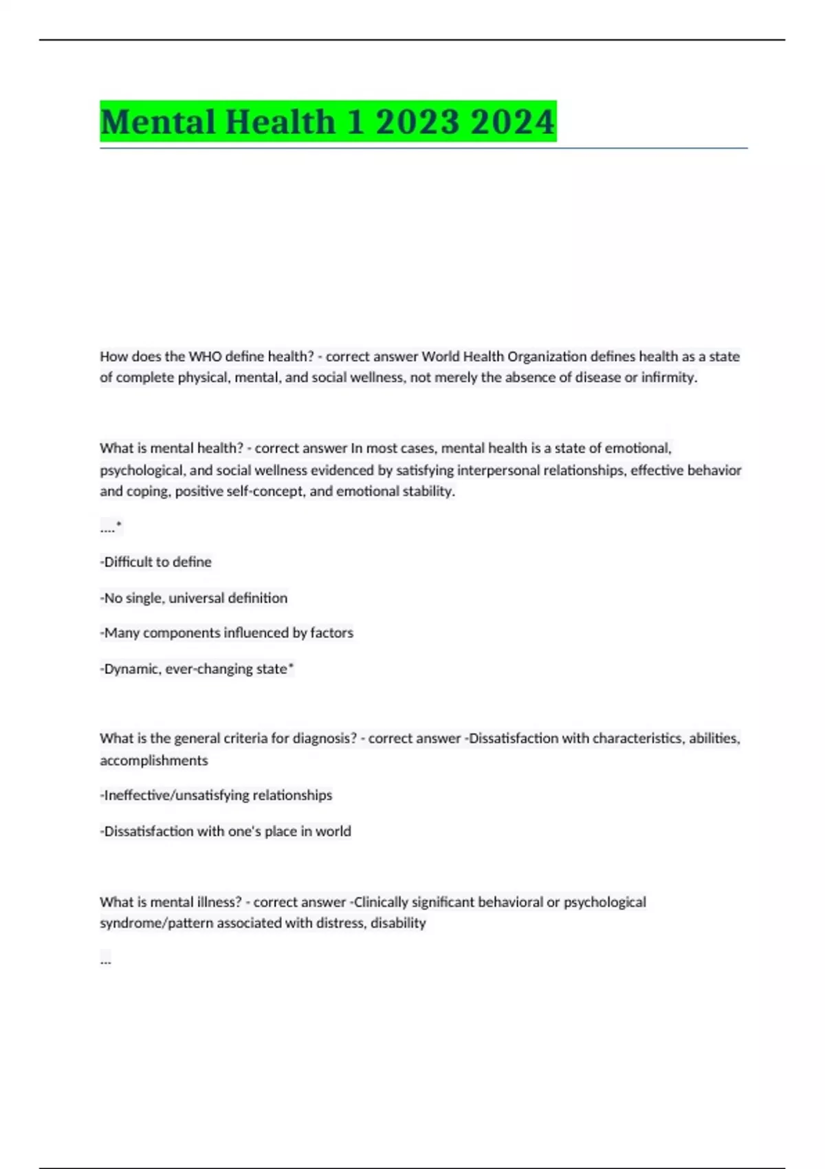 MENTAL HEALTH