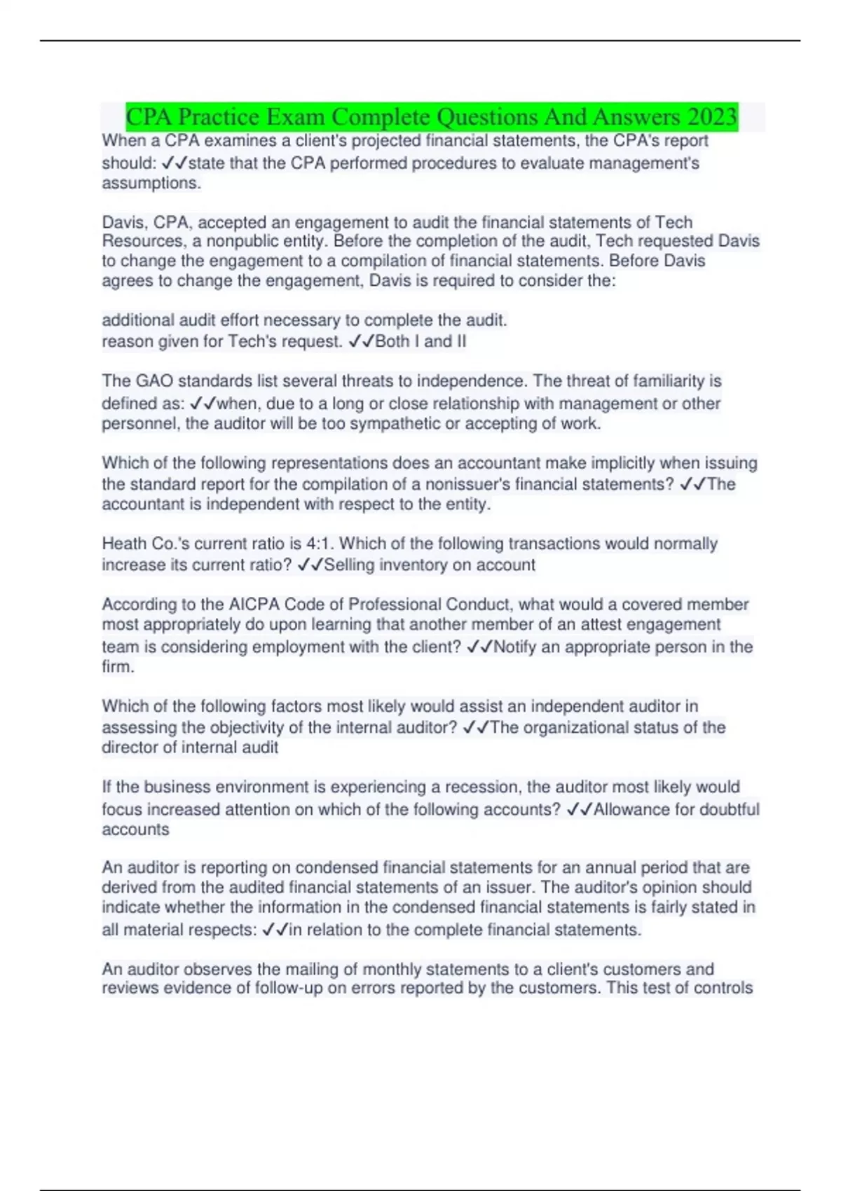 Certified Public Accountant (CPA) Verified Package Deal With Latest Quiz 2023 Certified Public Accountant (CPA) Verified Package Deal With Latest Quiz 2023