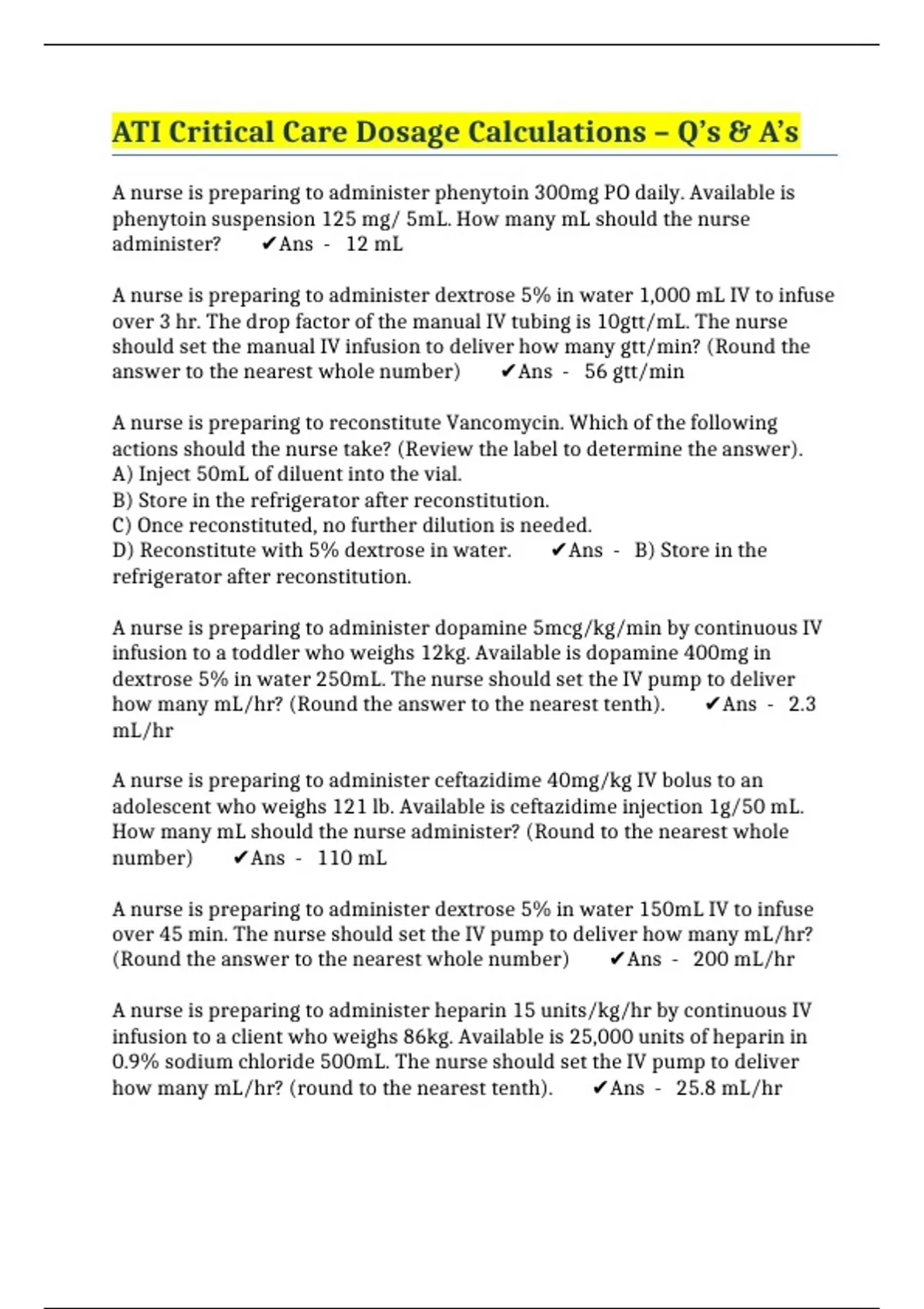 VALUE PACK::: ATI DOSAGE CALCULATIONS EXAMS