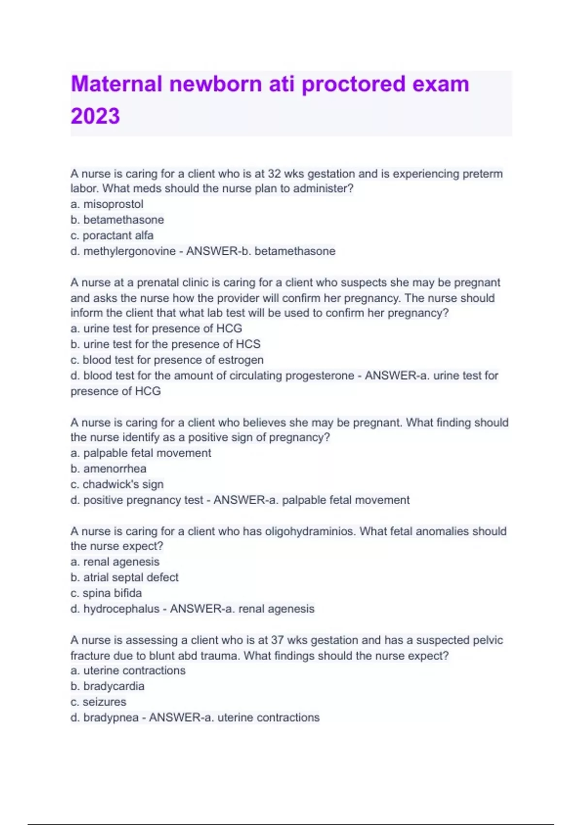 Maternal newborn ati proctored exam 2023 (100% CORRECT)