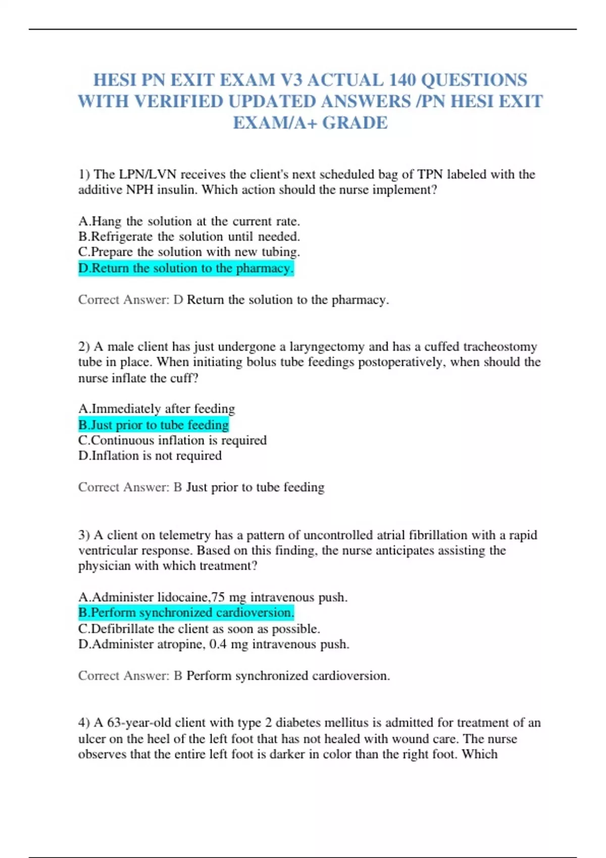 HESI PN EXIT EXAM V3 LATEST VERSION ALL 110 QUESTIONS AND VERIFIED ANSWERS PLUS RATIONALES/PN HESI EXIT EXAM V3 HESI PN EXIT EXAM LATEST VERSION 2023 ALL 110 QUESTIONS AND VERIFIED ANSWERS AND RATIONALE /PN HESI EXIT EXAM HESI LPN EXIT EXAM /HESI PN EXIT