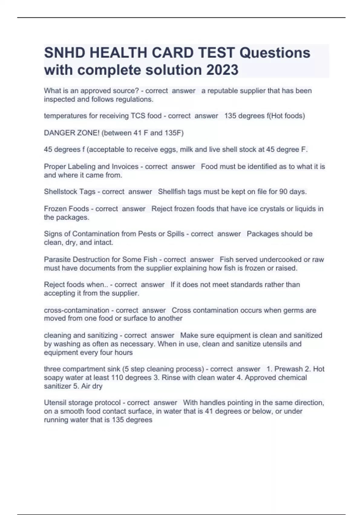 SNHD AEMT Protocols Quiz and answers correctly solved 2023 Exam (elaborations) SNHD- Body Art Card Question and answers already passed 2023 Exam (elaborations) SNHD EMT EMS PROTOCOLS Question and answers 100% correct 2023 Exam (elaborations) SNHD food handlers card Question and answers rated A+ 2023 Exam (elaborations) SNHD Protocol Exam Re