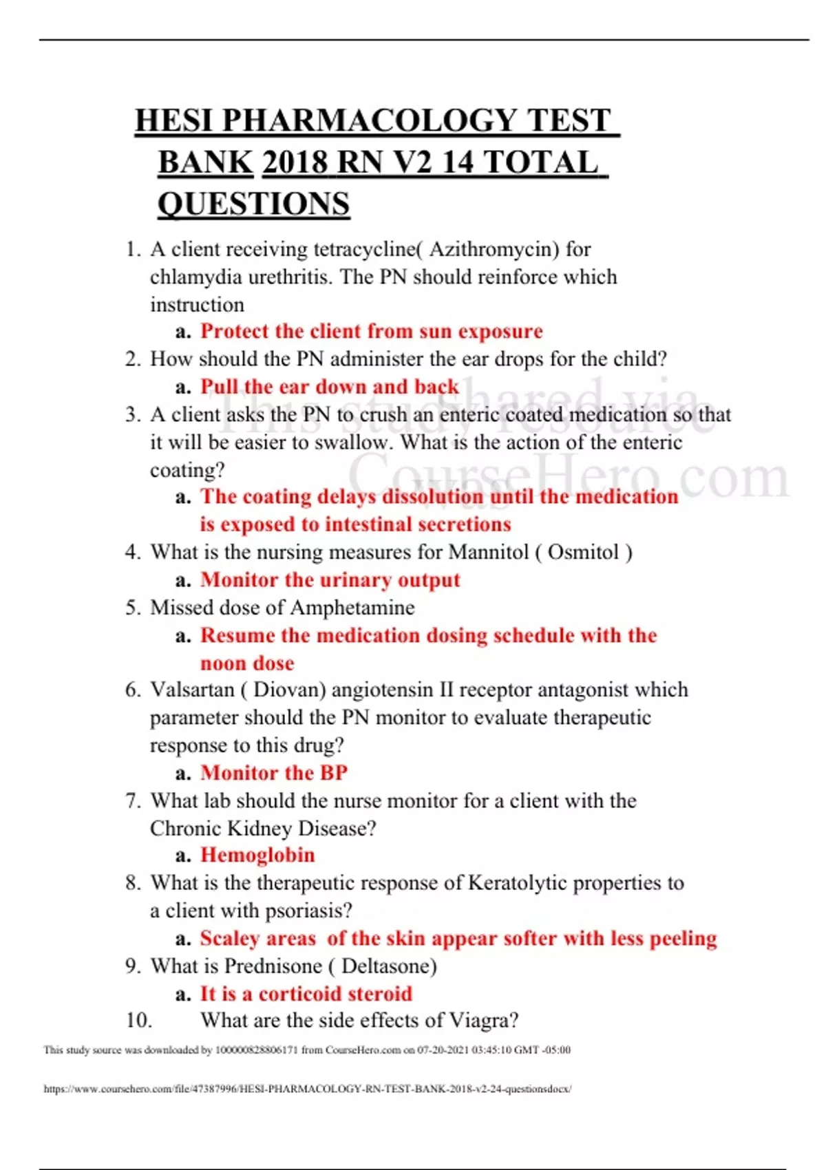PHARMACOLOGY TEST BANK