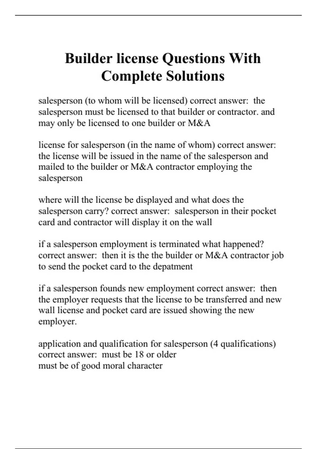 Builder license Questions With Complete Solutions