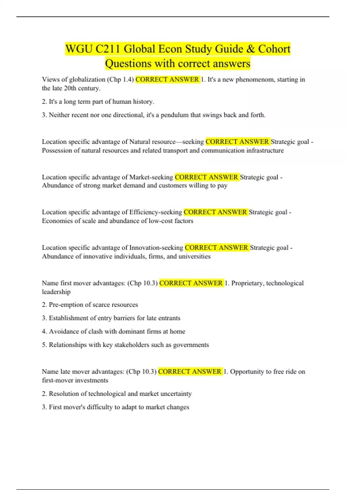 WGU C211 Global Econ Study Guide & Cohort Questions with correct answers