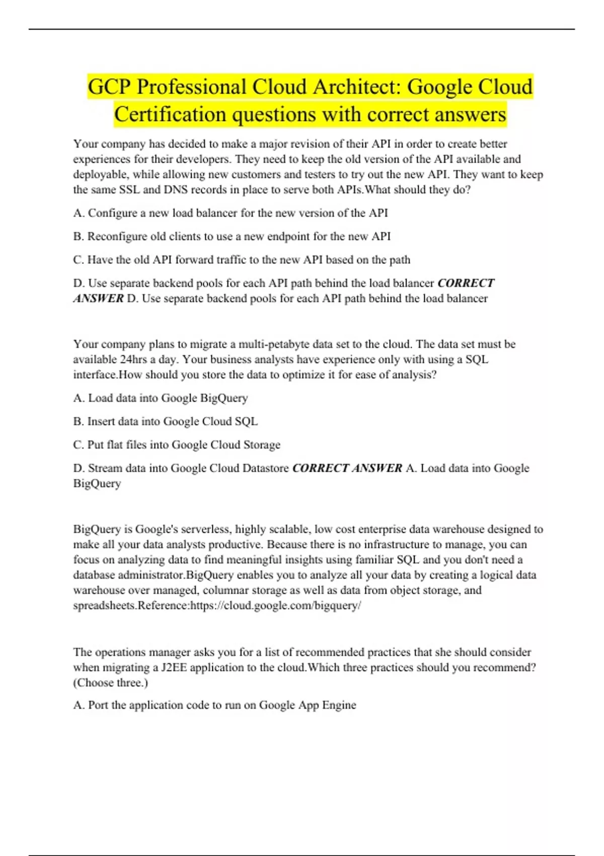 GCP Professional Cloud Architect: Google Cloud Certification questions with correct answers