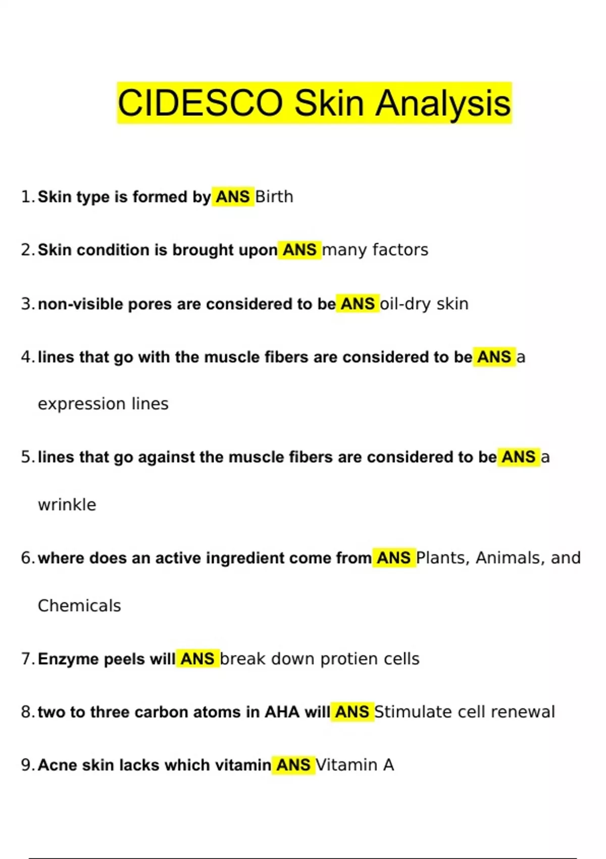 CIDESCO Skin Analysis Questions and Answers Latest [100% correct answers]