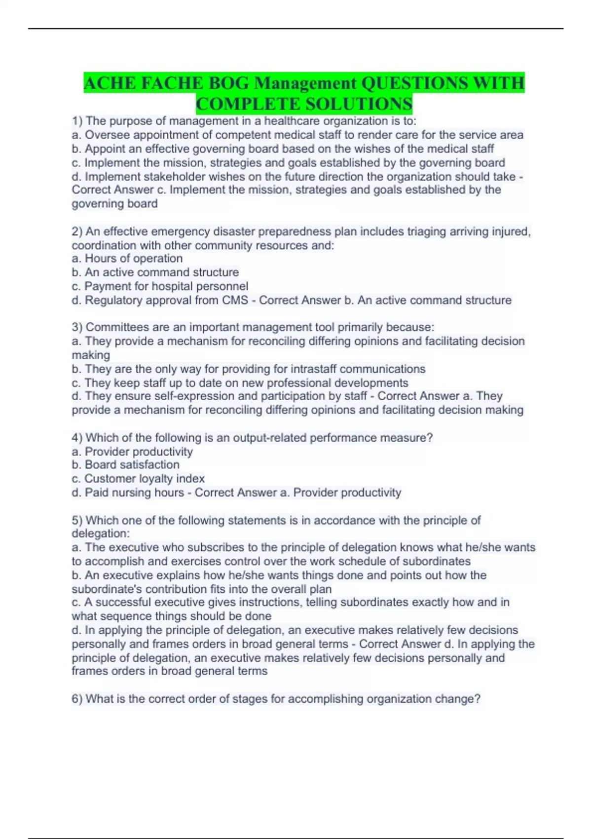 ACHE FACHE BOG Management QUESTIONS WITH COMPLETE SOLUTIONS