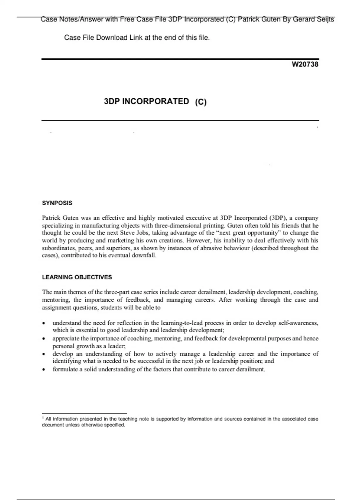 Case Notes & Answer for 3DP Incorporated (A) (B) (C) Patrick Guten By Gerard Seijts Discount Price Bundle Download