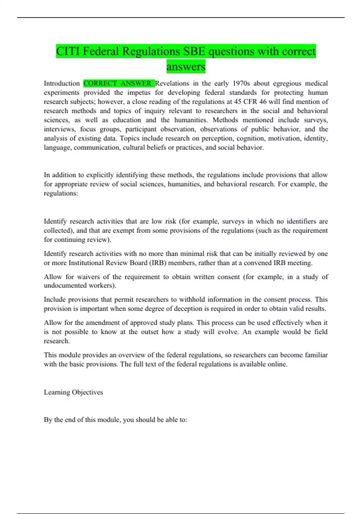 CITI Training Human Subjects Protection Basic Course questions with correct answers