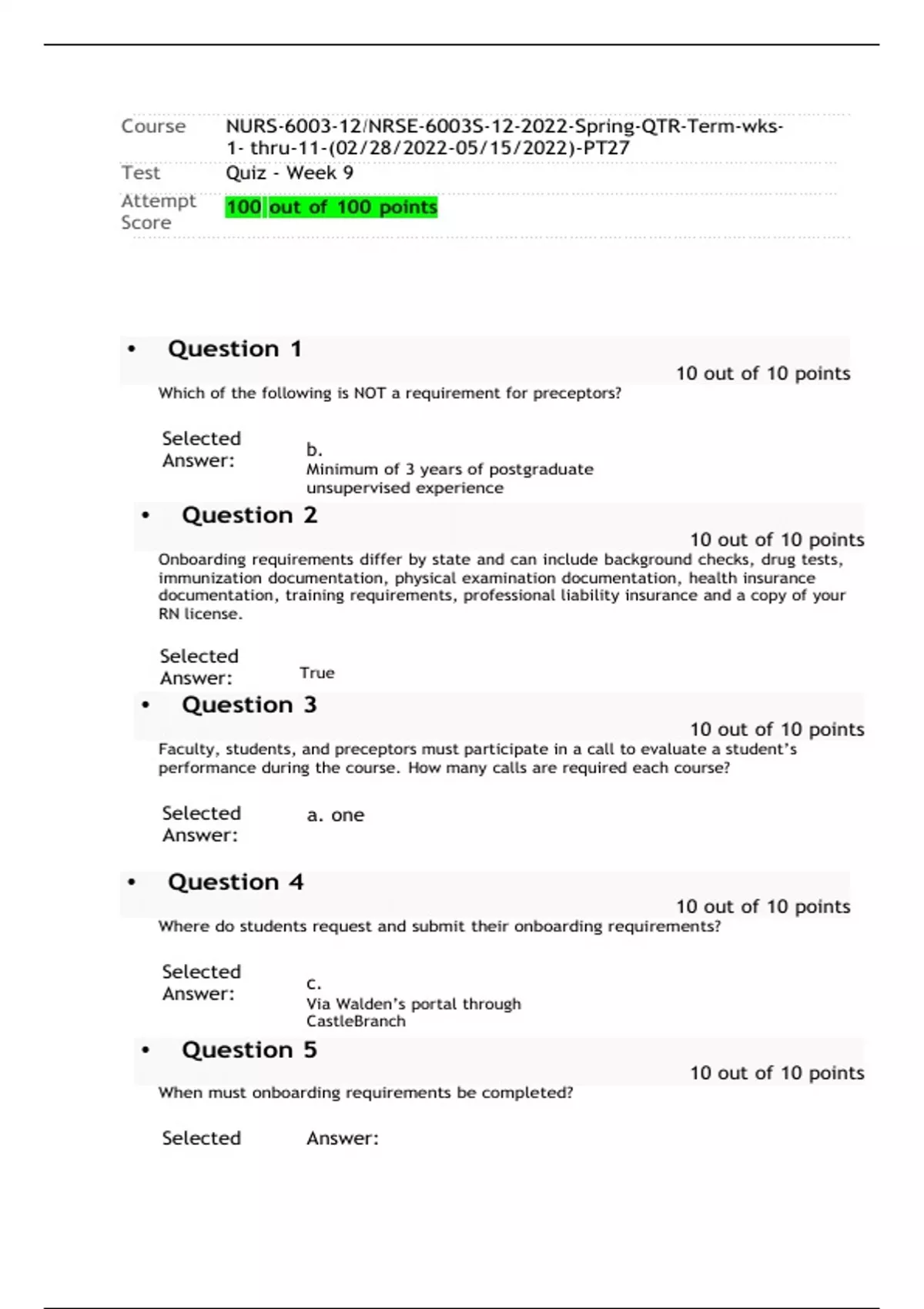 NURS 6003 Week 9 Quiz Practicum Quiz (100 out of 100 Points April 2022) NURS 6003 Week 9 Quiz Practicum Quiz (100 out of 100 Points Feb 2022) NURS 6003 Week 9 Quiz Practicum Quiz (100 out of 100 Points July 2022) NURS 6003 Week 9 Quiz Practicum Quiz (100 out of 100 Points) NURS 6003 Week 9 Quiz Practicum Quiz (100 out of 100 Points July 2022)