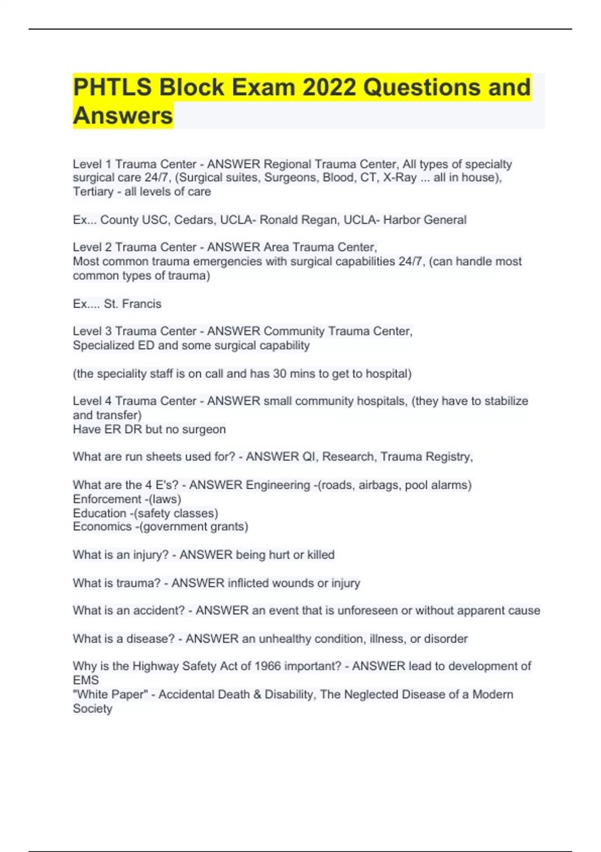 VALUE PACK FOR PHTLS Pretest, Post test, Block Exams Bundled with Complete Solutions 2023 RATED A+