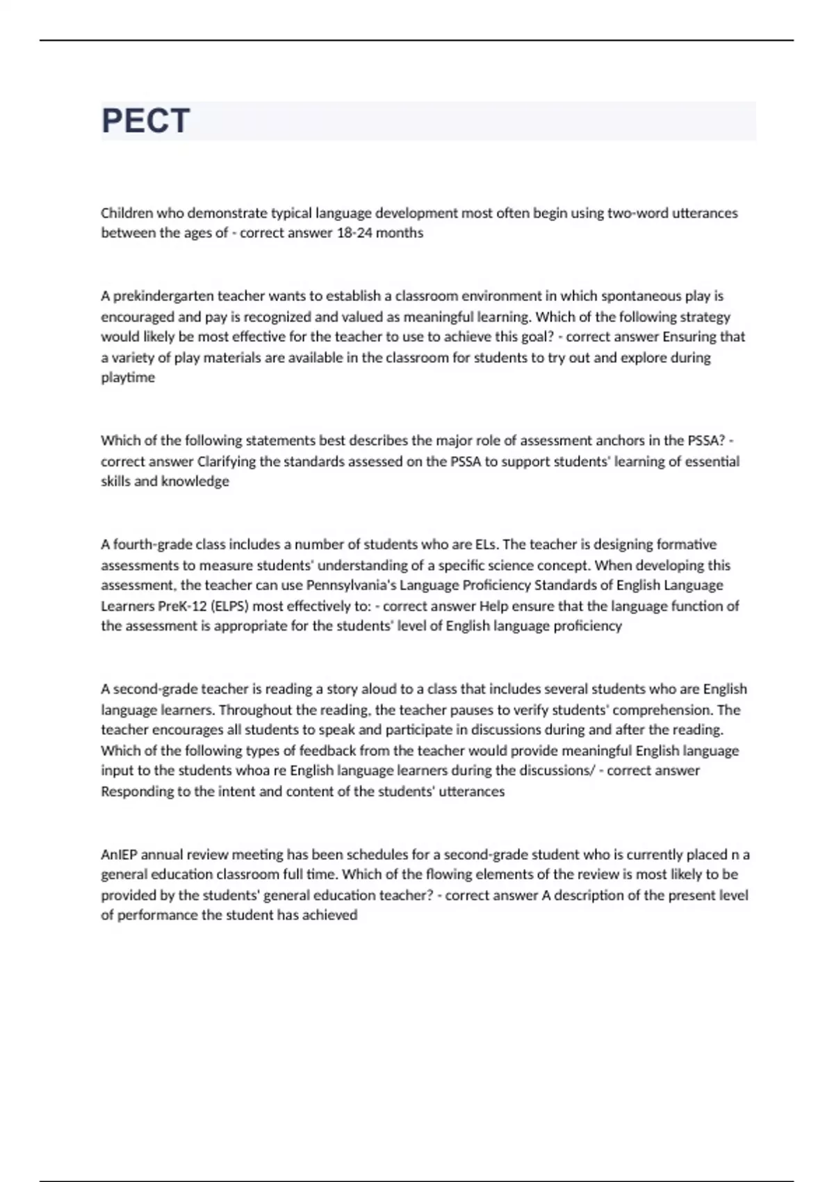 package deal for PECT EXAM 2023 Verified