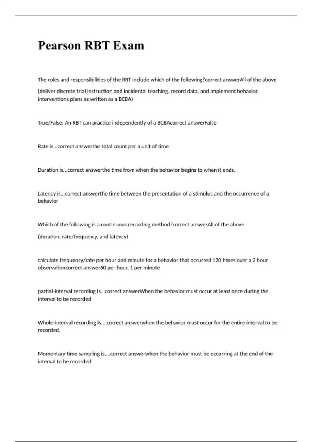 RBT exam 2023 with 100% correct answers RBT Pearson Exam question 2023 with 100% correct answers
