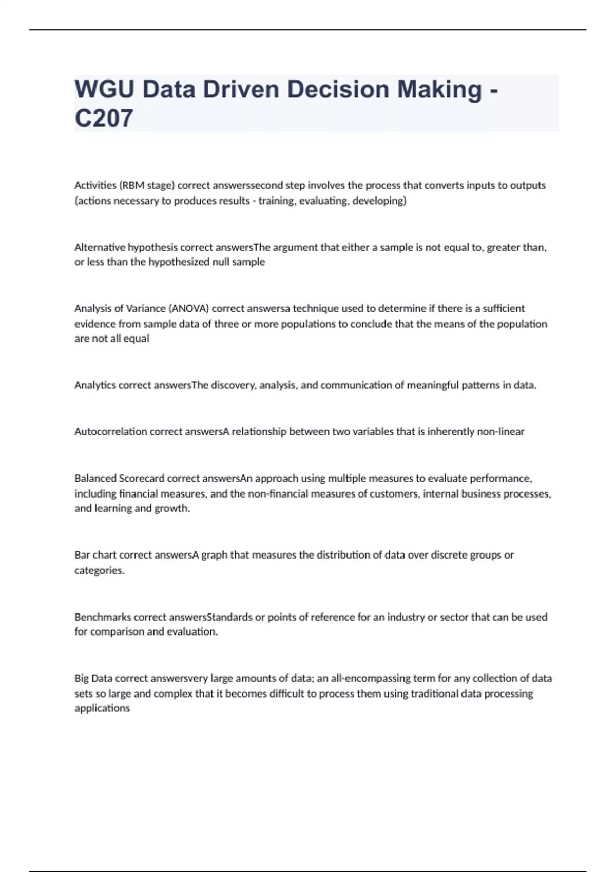 C207 WGU Data Driven Decision Making bundled exams 2023 with 100% correct answers