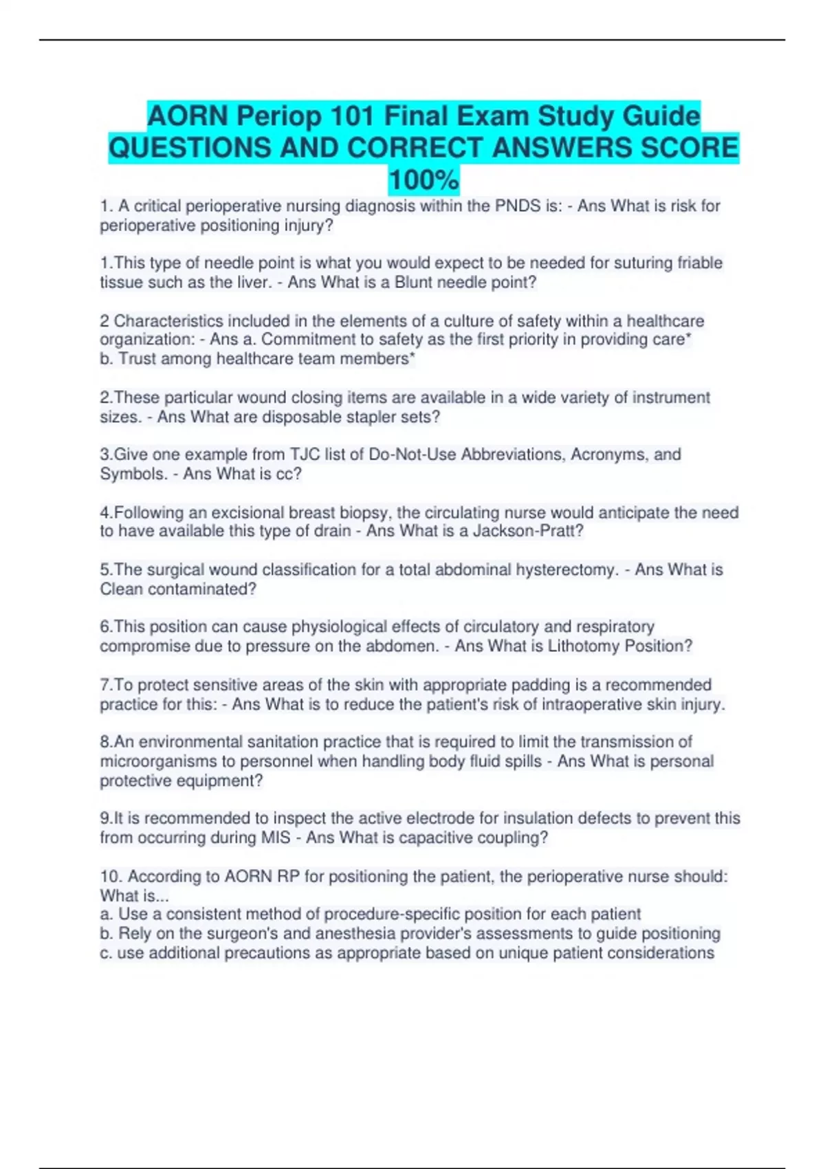 A package deal for AORN PERIOP 101 exams and study guide all bundled togther