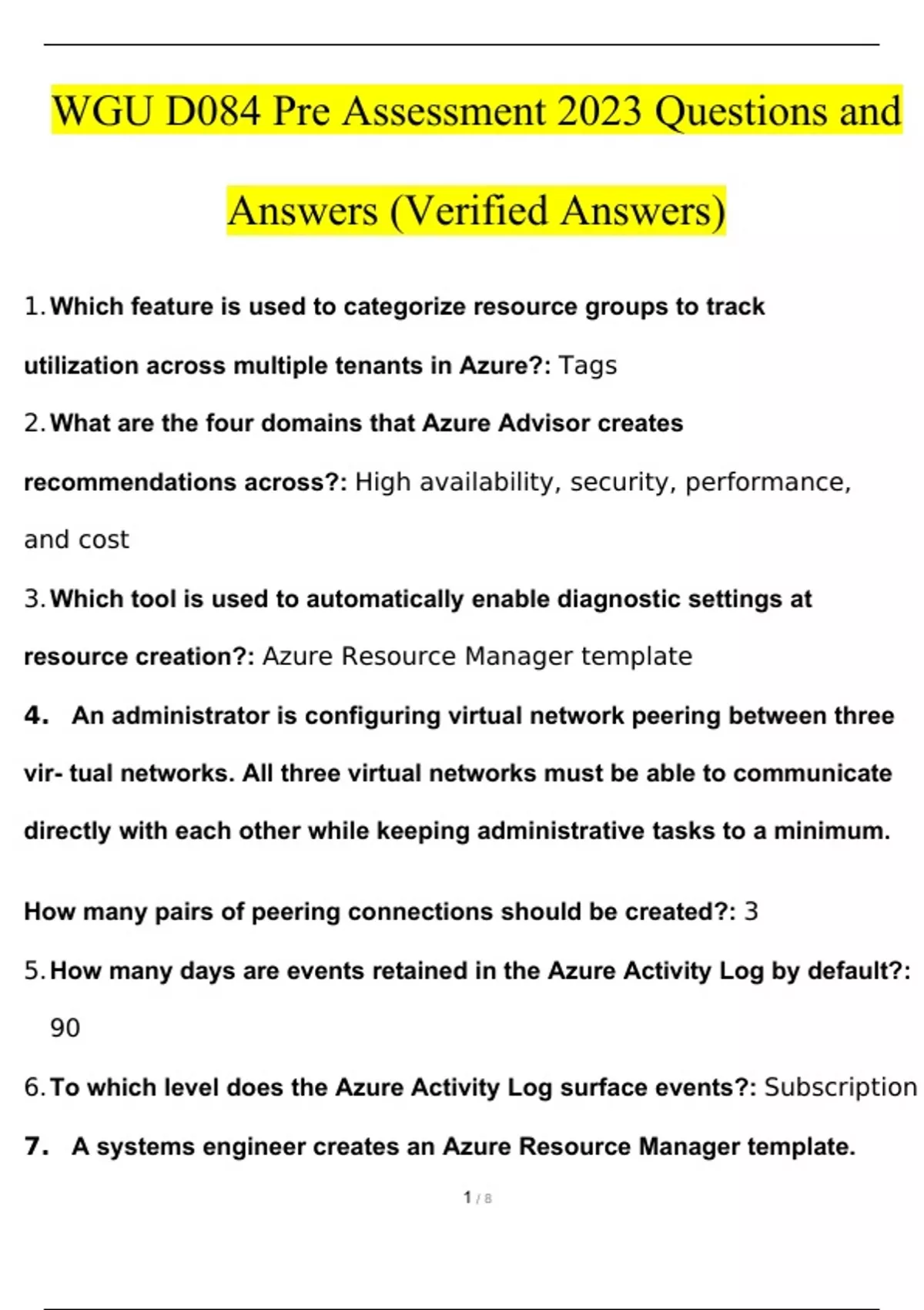 WGU D084 Cloud Platform Solutions Exam 2023 STUDY BUNDLE PACK SOLUTION (Verified Answers)