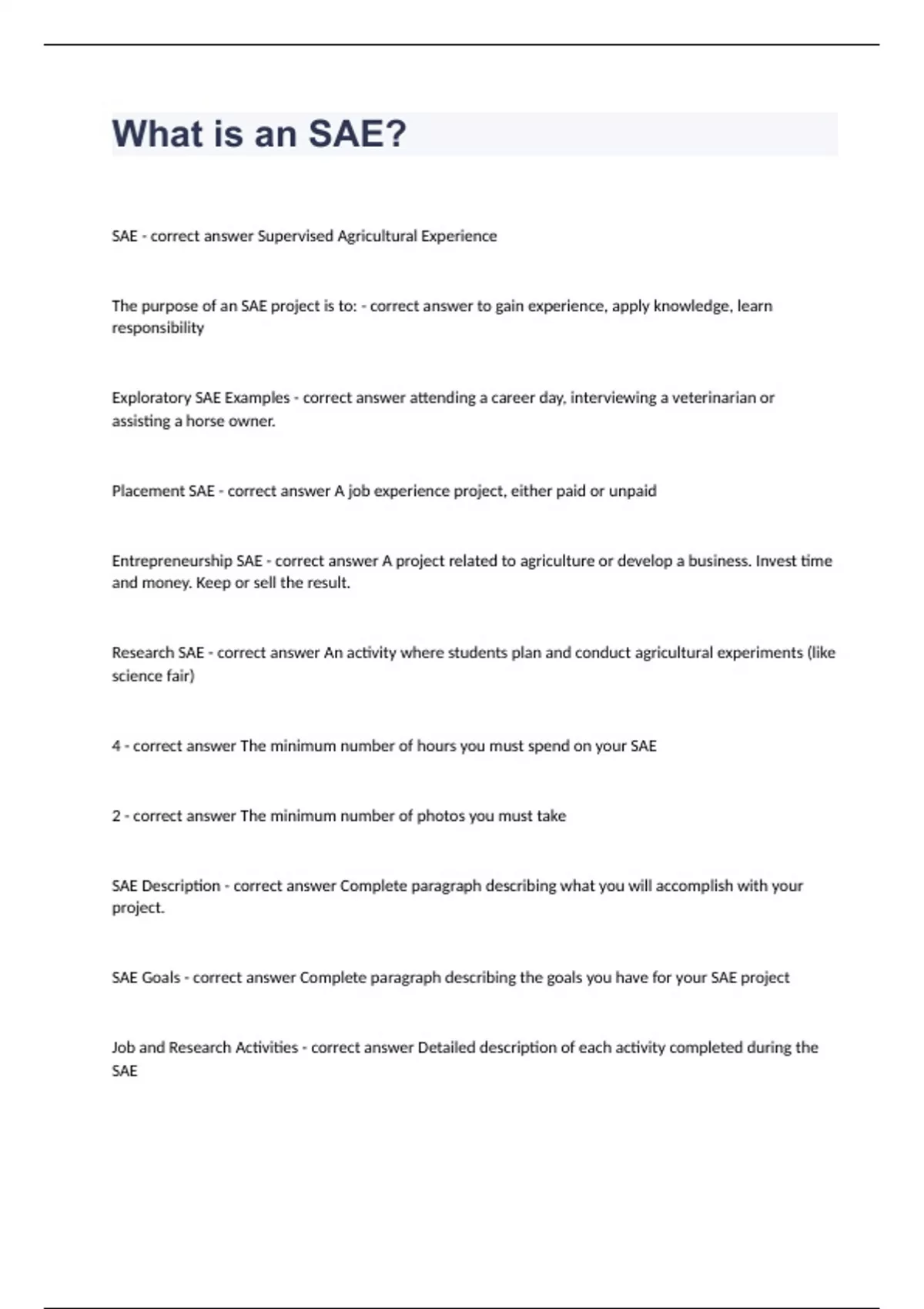 1 Exam (elaborations) Ag Ed Basics, SAE types, & CDE s fully solved graded A+ 2023 2 Exam (elaborations) DSA Exam 1 question n answers graded A+ 2023 3 Exam (elaborations) DSAE 1303 Unit 4 ACC question n answers graded A+ 2023 4 Exam (elaborations) DSAE 1415 Spectral Doppler question well answered rated A+ 2023 5 Exam (elaborations) DSAE 1415 q