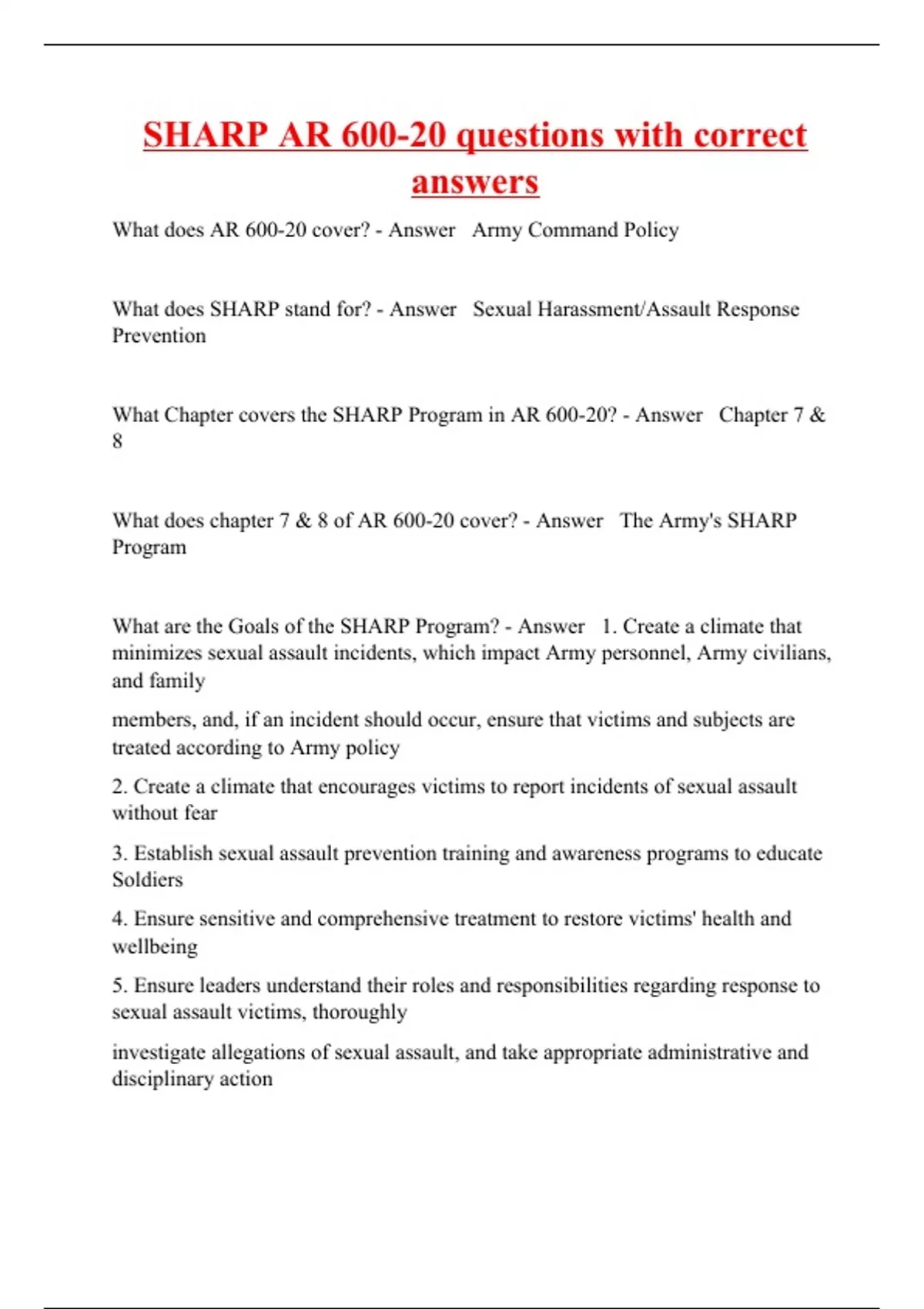 The Sexual Harassment/Assault Response and Prevention Program (SHARP) questions with correct answers