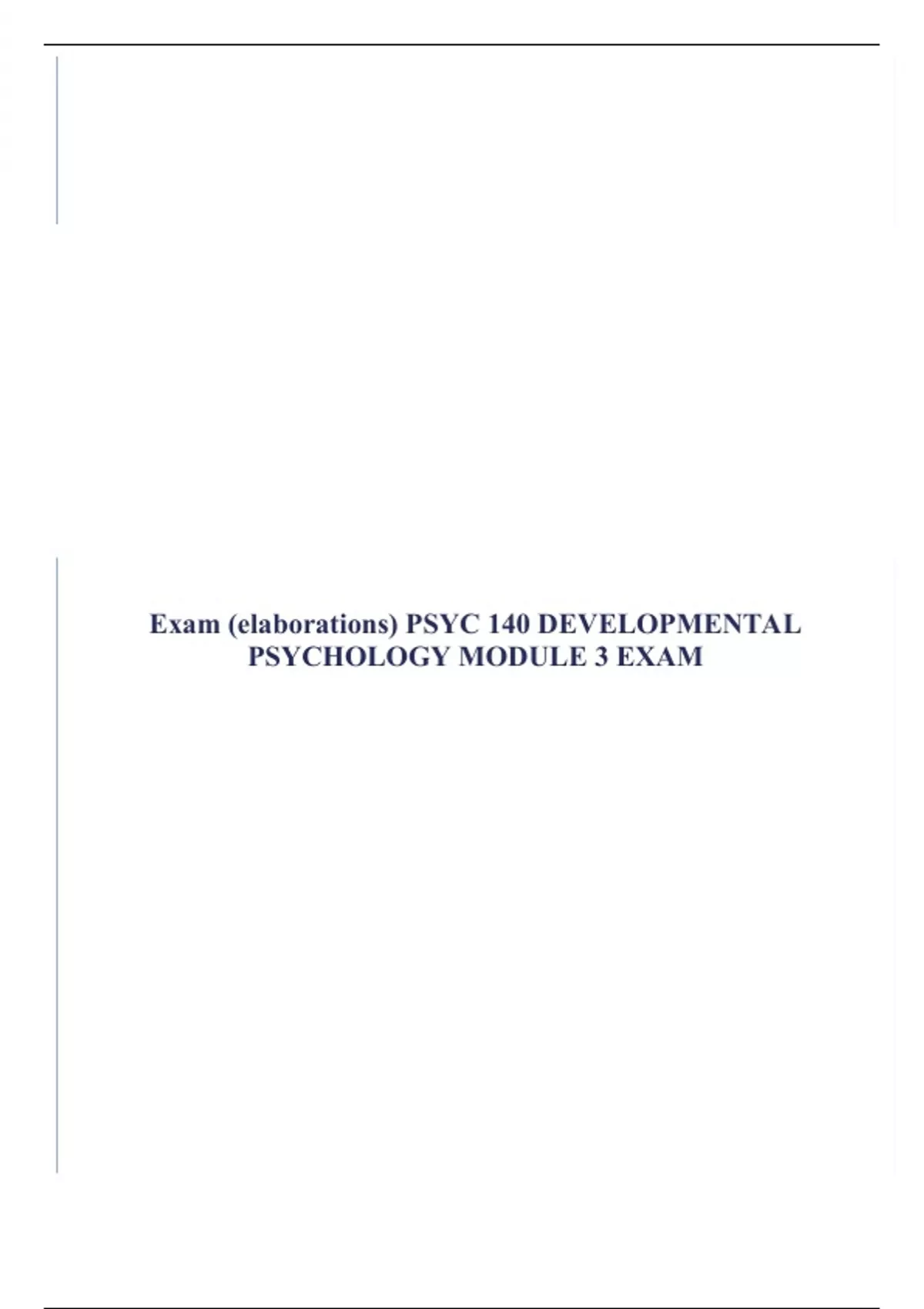 1 Exam (elaborations) PSYC 140 Module 1 Exam 2 Exam (elaborations) Exam (elaborations) PSYC 140 DEVELOPMENTAL PSYCHOLOGY FINAL EXAM 3 Exam (elaborations) Exam (elaborations) PSYC 140 DEVELOPMENTAL PSYCHOLOGY EXAM 1 ANSWERS KEY 4 Exam (elaborations) Exam (elaborations) PSYC 140 DEVELOPMENTAL PSYCHOLOGY MODULE 2 EXAM 5 Exam (elaborations) Exam (e