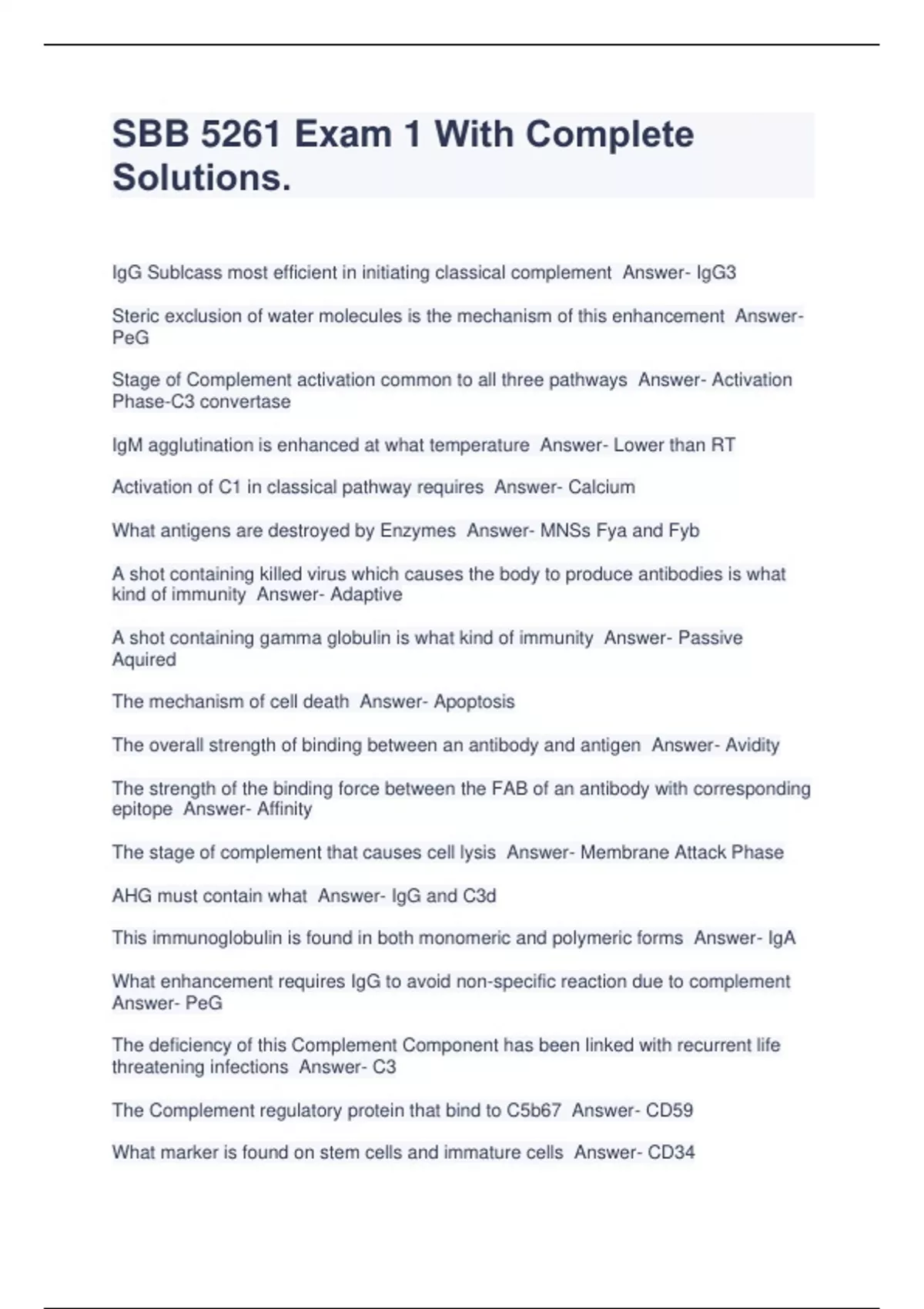 SBB 5261 Exam 1 With Complete Solutions.,SBB ASCP Practice Test Questions With Correct Answers.,SBB Practice test Review Questions And Answers Rated 100% Correct!!,SBB study guide #2 questions and answers graded A+,SBB EXAM (Preparing for ASCP(SBB) BOC) SOLVED 100% CORRECT!!,SBB 5261 Exam 3,Turcan SBB exam review AABB Packet,SBB study guide questi