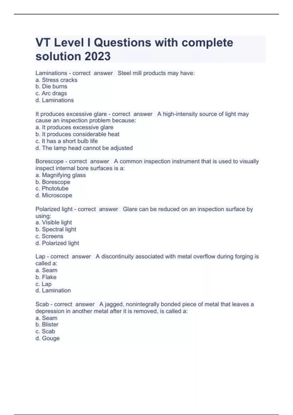 Exam (elaborations) NDT UT Level 3 Question and answers already passed 2023 Exam (elaborations) ASNT level 3 Basic Question and answers already passed 2023 Exam (elaborations) ASNT Level III Basic exam Question and answers 100% correct 2023 Exam (elaborations) ASNT Level III Program Question and answers rated A+ 2023 Exam (elaborations) Vis